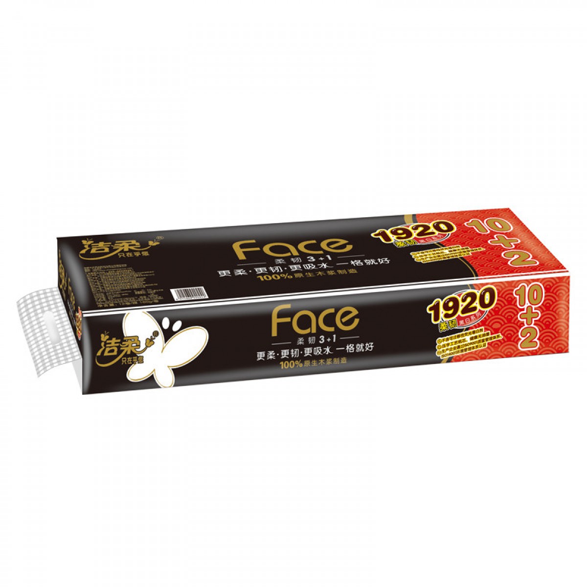 洁柔BJ178-12卷纸Face有芯卫生纸 4层 160g*12卷/提