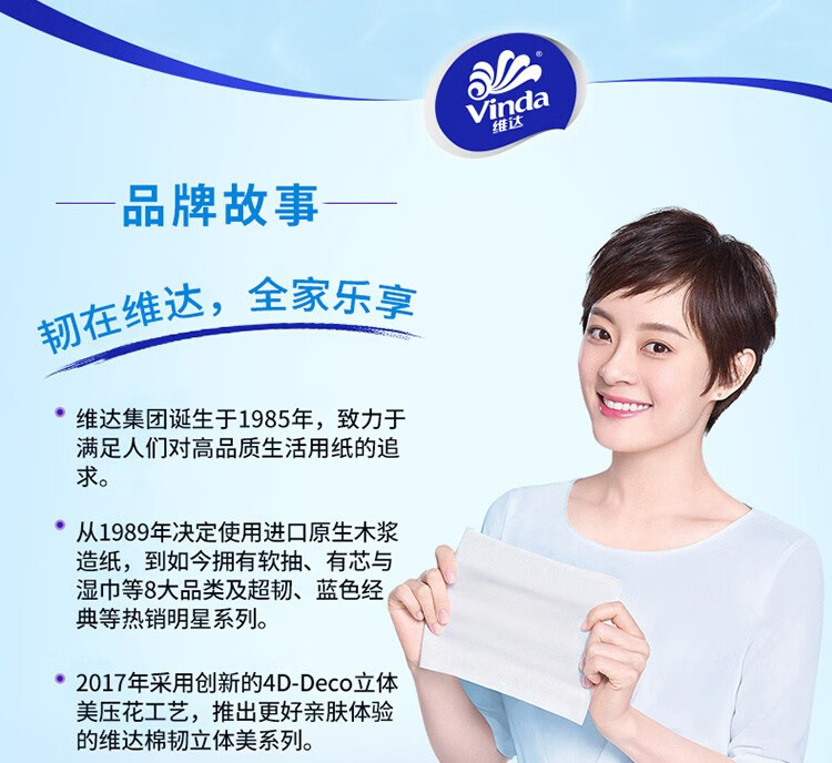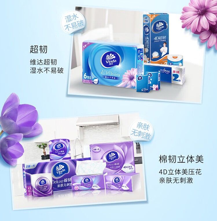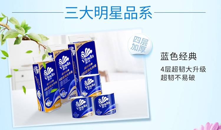 维达V4073-A卷纸蓝色经典4层200g10卷/提 6提/袋