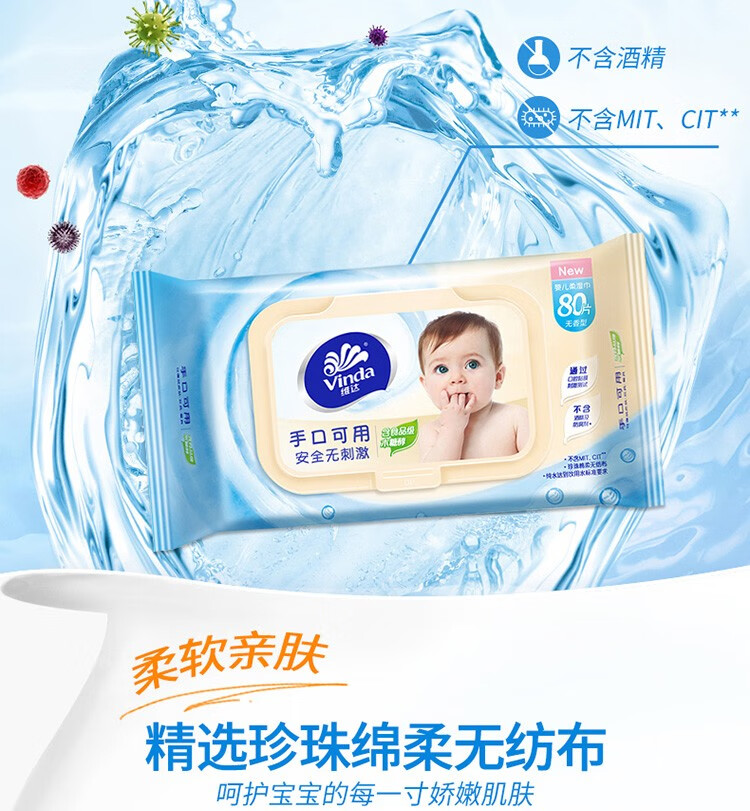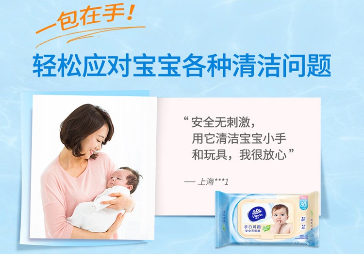 商品名称:维达VW2004婴儿柔湿巾(有盖) 80片 12包/箱(单位:包)