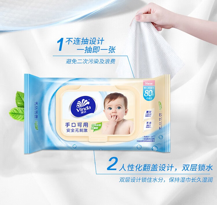 维达VW2004婴儿柔湿巾(有盖) 80片 12包/箱