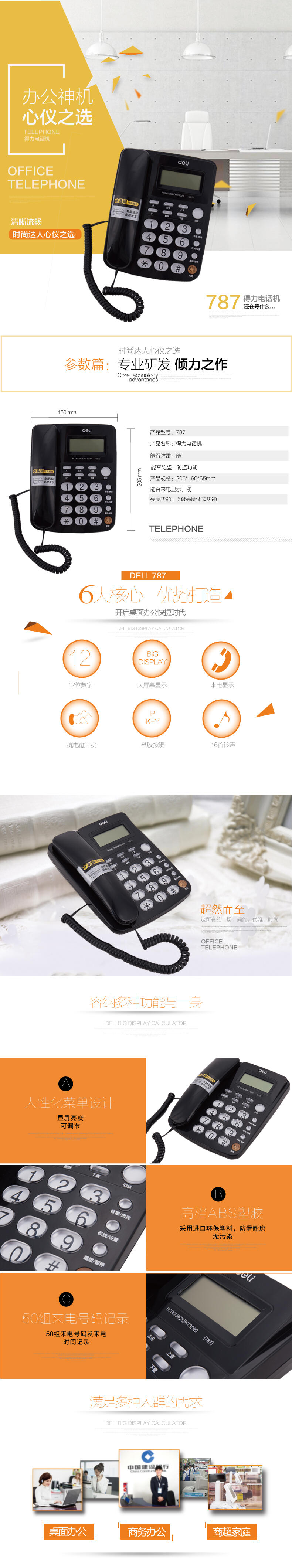 商品名称:得力787电话机 黑色(单位:台)
