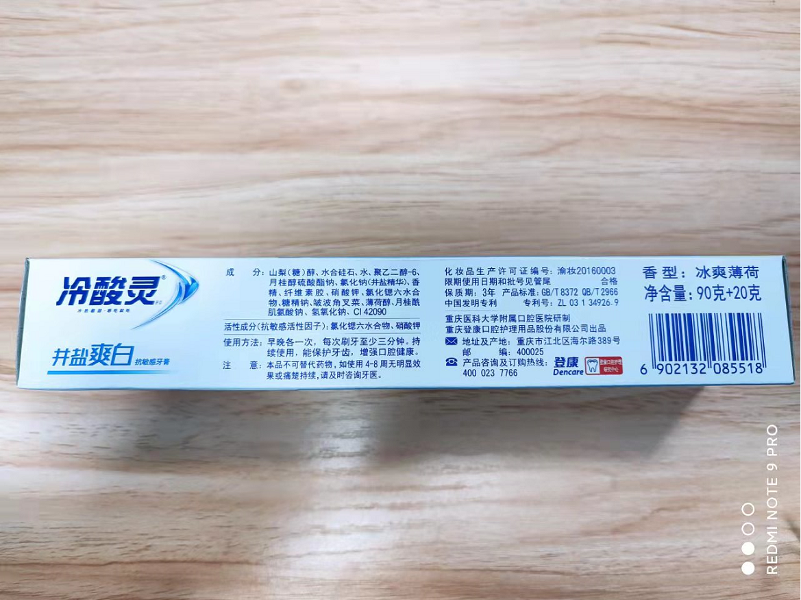 商品名称:冷酸灵牙膏 井盐爽白 冰爽薄荷 90+20g(单位:支)