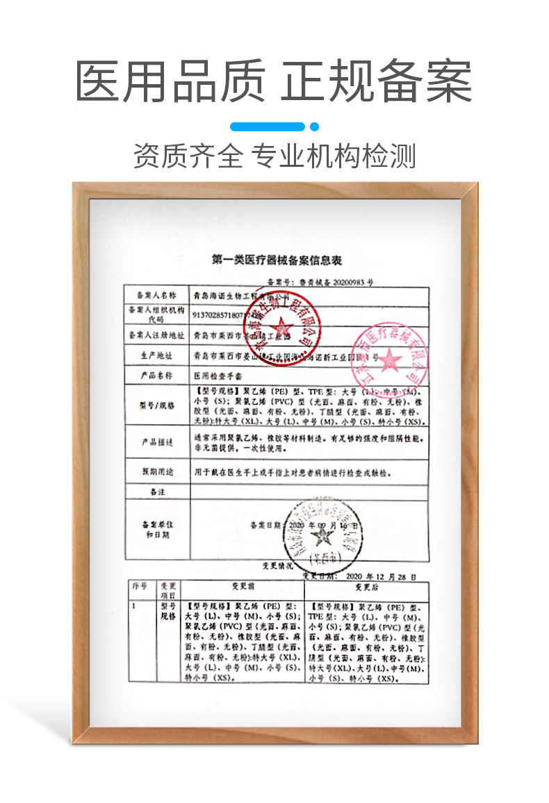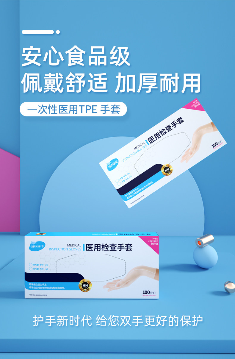商品名称:海氏海诺TPE型医用一次性手套 L码 100只/盒(单位:盒)