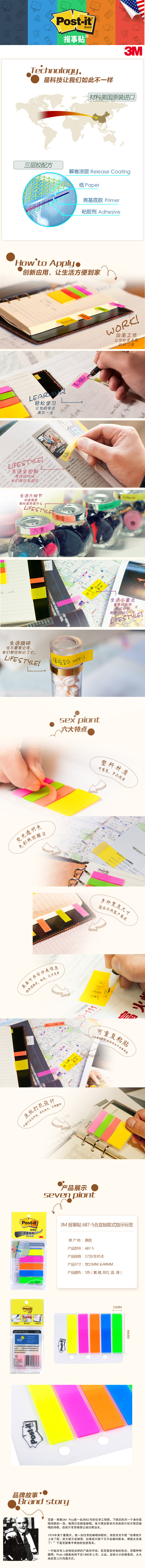 商品名称:3M 687-5A报事贴合宜箭头指示标签 20片*5色 11mm*42mm 36包/盒 单位:包