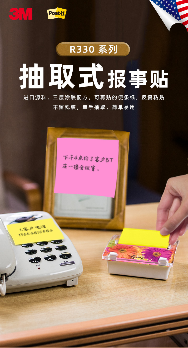 商品名称:3M R330P报事贴便条纸抽取系列粉彩 3*3 蓝绿色(单位:本)