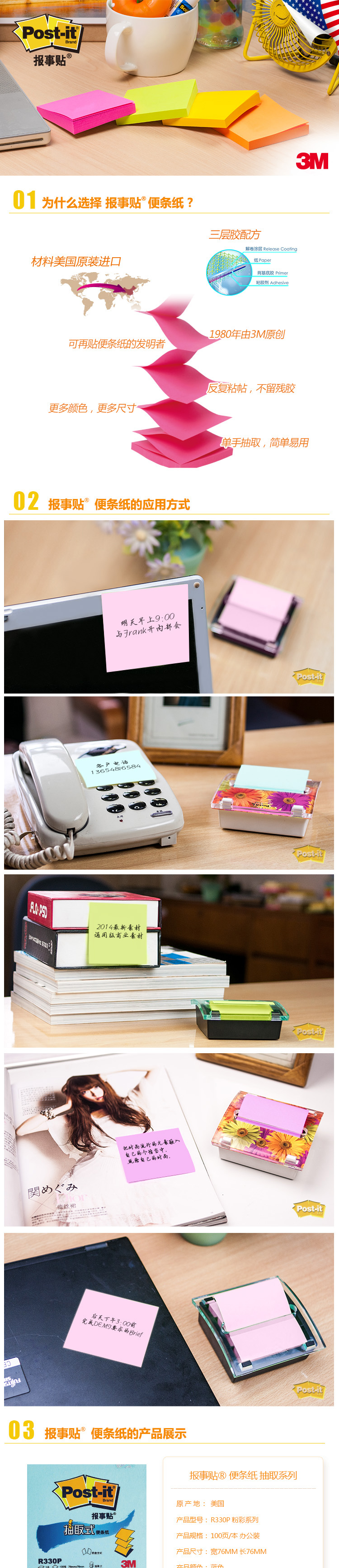 商品名称:3M R330P报事贴便条纸抽取系列粉彩 3*3 蓝色(单位:本)
