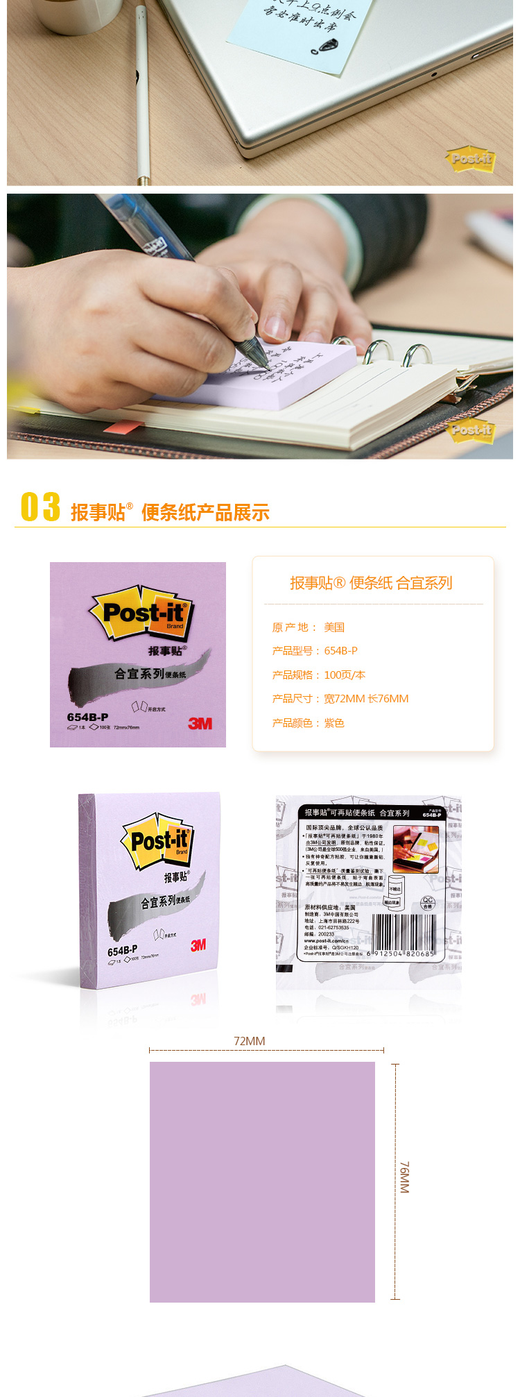 商品名称:3M 654B-P报事贴便条纸合宜系列粉彩 紫色(单位:本)