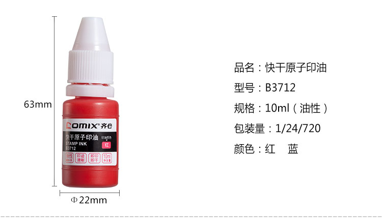 商品名称:齐心B3712快干原子印油 10ml 红色(单位:瓶)