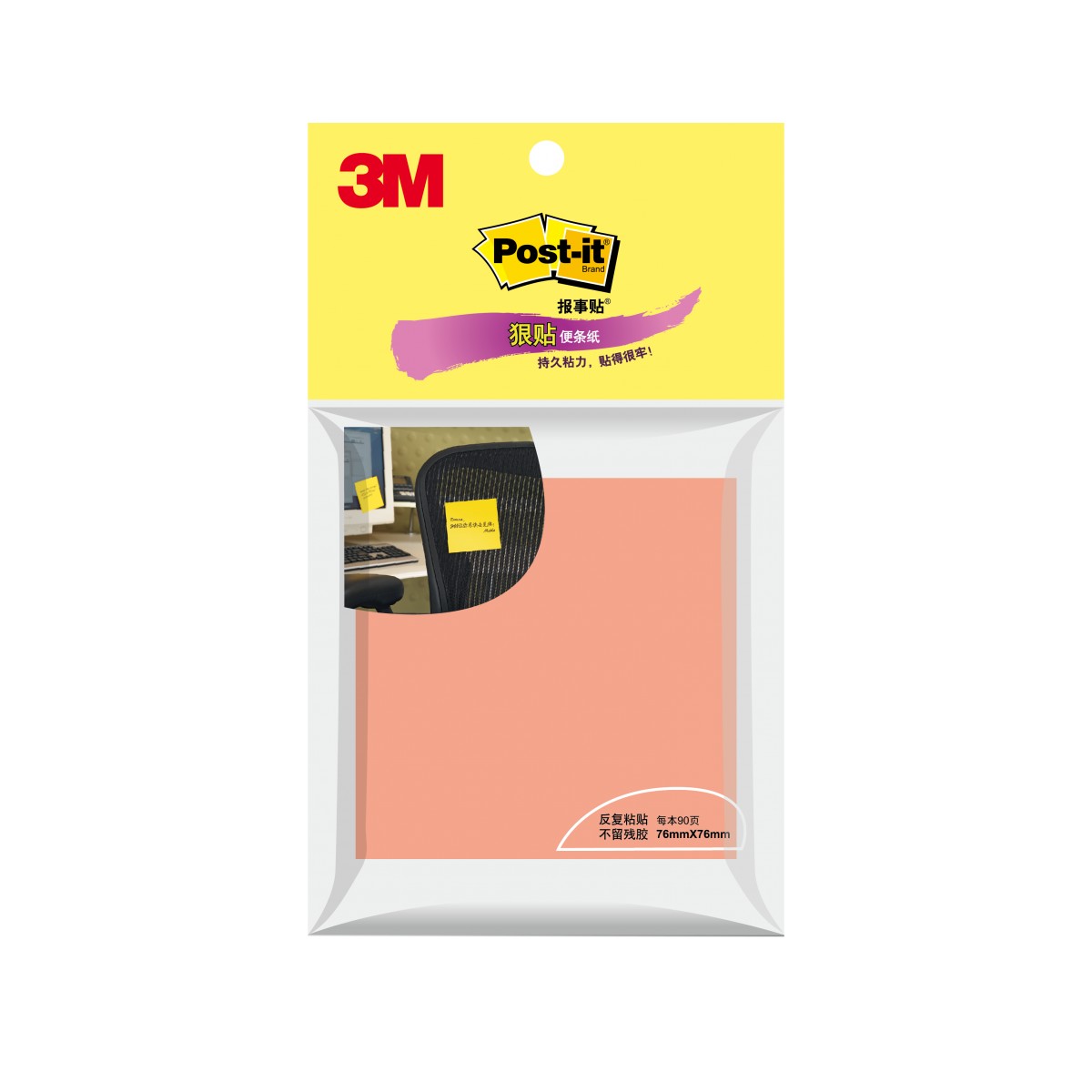 3M 654SP-HPI报事贴便条纸狠贴系列 (挂装) 杏粉色 76*76mm 90页/本(