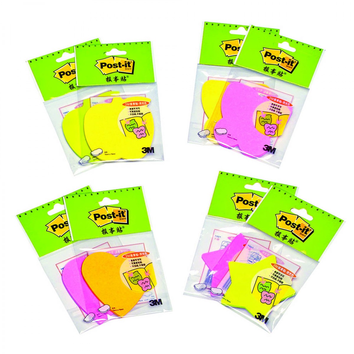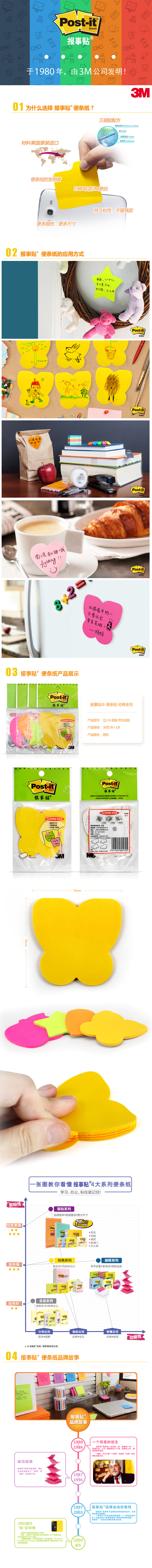 商品名称:3M Q-1报事贴便条纸经典系列 异型贴混装荧光四色 76*76mm 30页/本 36本/箱(单位:本)