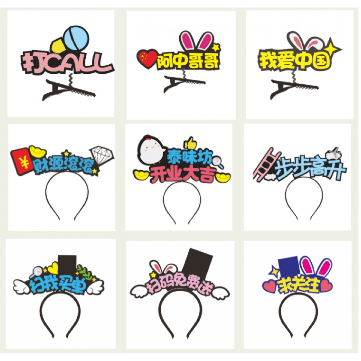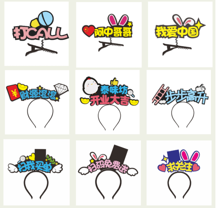 卖萌搞怪定制发箍网红发卡 9个/组(单位:组)