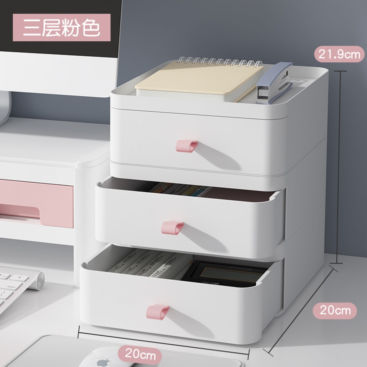 商品名称:办公桌面收纳盒抽屉式收纳柜 芭蕾粉 3层(单位:个)
