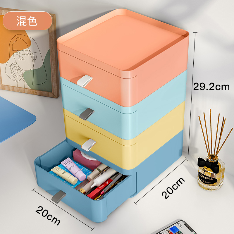 办公桌面收纳盒抽屉式收纳柜 混色 4层