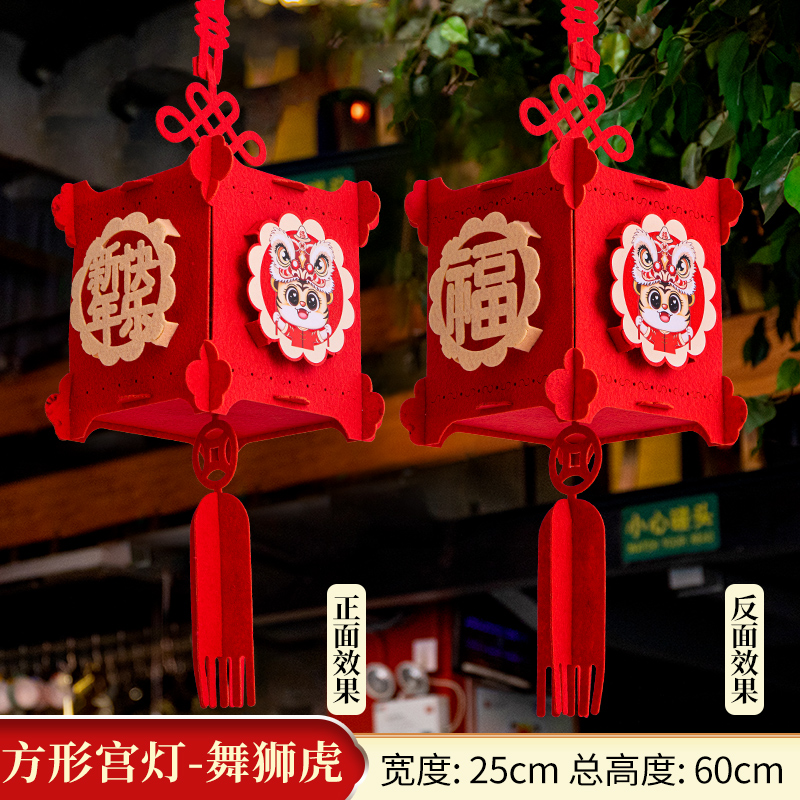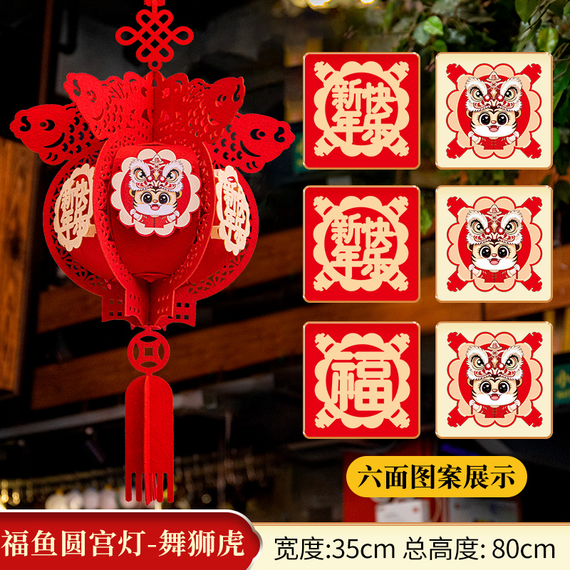 虎年新年红灯笼挂饰(舞狮虎方形灯+可爱虎长方灯+舞狮虎六边鱼宫灯各一个)