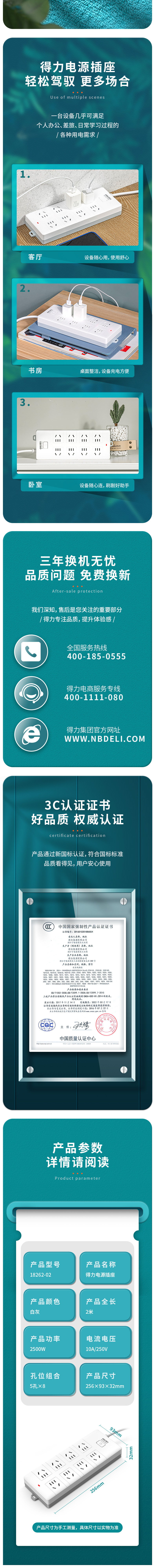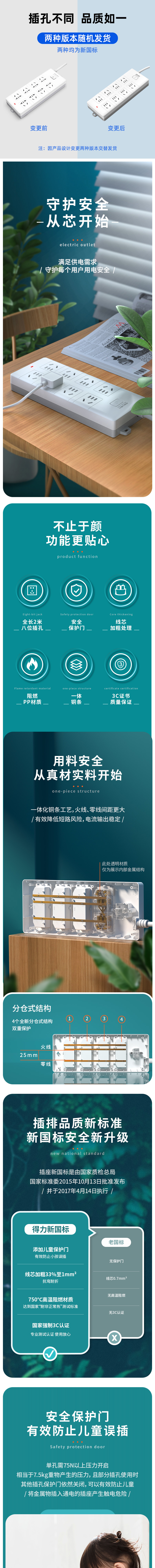 商品名称:得力18262-02插座 8组2米 PVC袋装(单位:个)