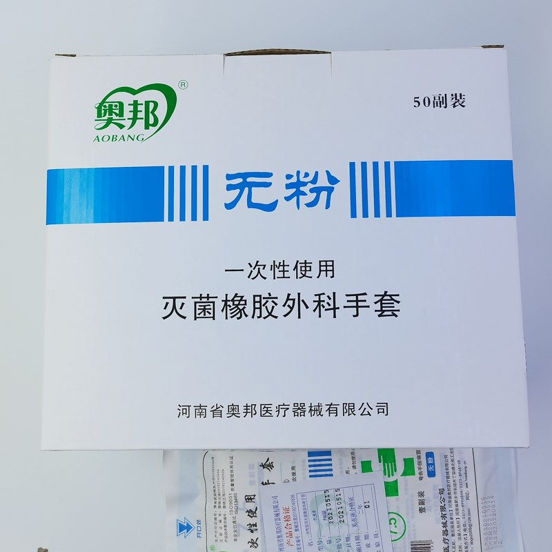 商品名称:奥邦一次性灭菌橡胶外科手套 50双/盒(独立包装) 无粉7.0 (单位:盒)