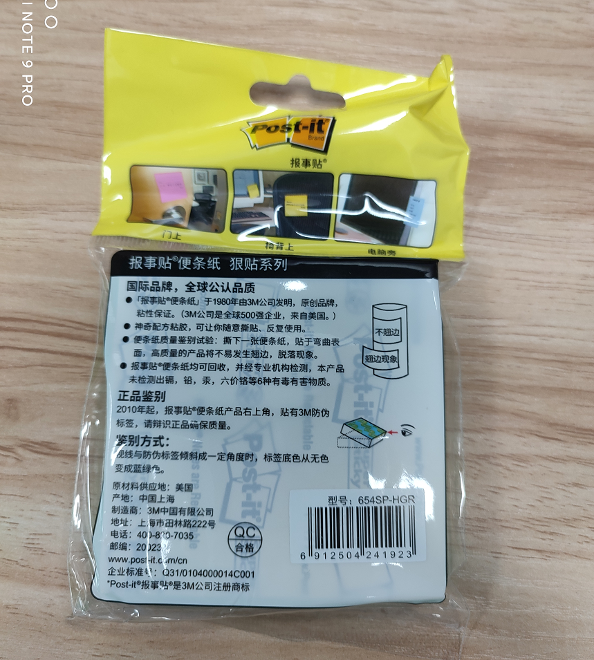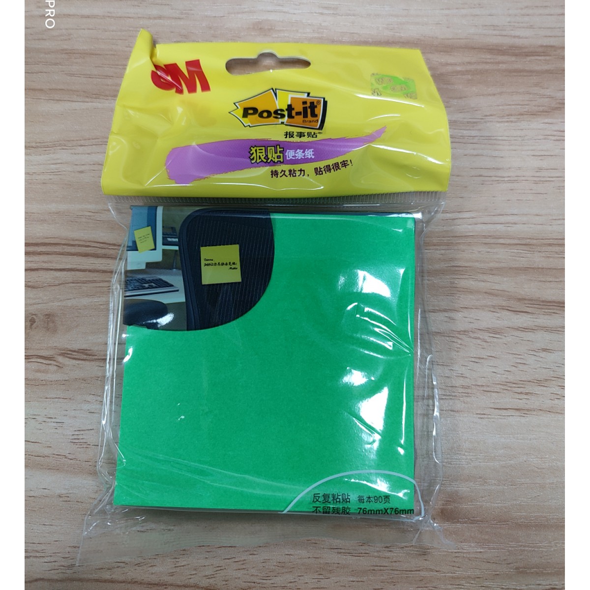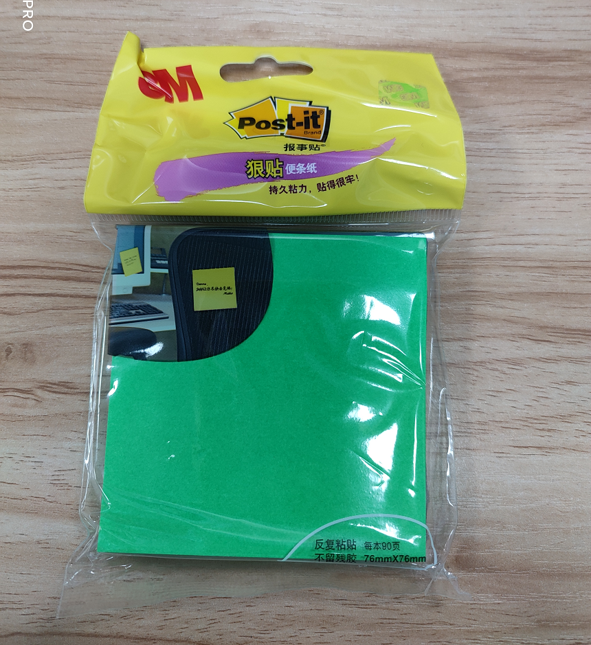 商品名称:3M 654SP-HGR报事贴便条纸狠贴系列(挂装) 樱草绿 90页/包 76*76mm 36包/箱(单位:包)