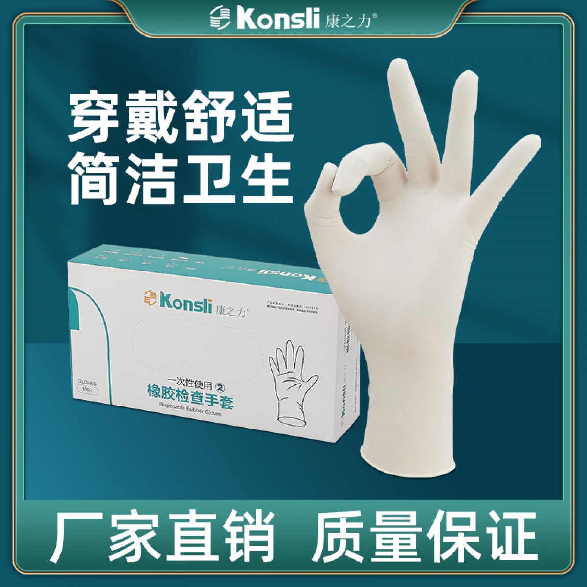 商品名称:康之力一次性白色橡胶检查手套 M码 100只/盒(单位:盒)