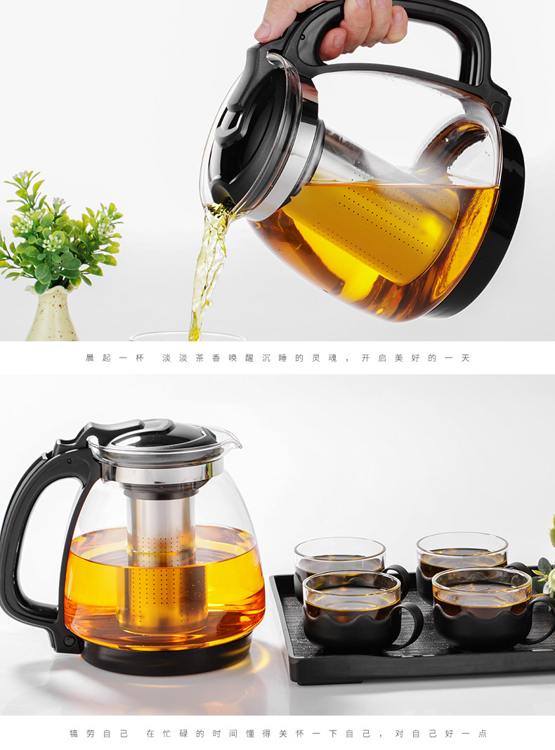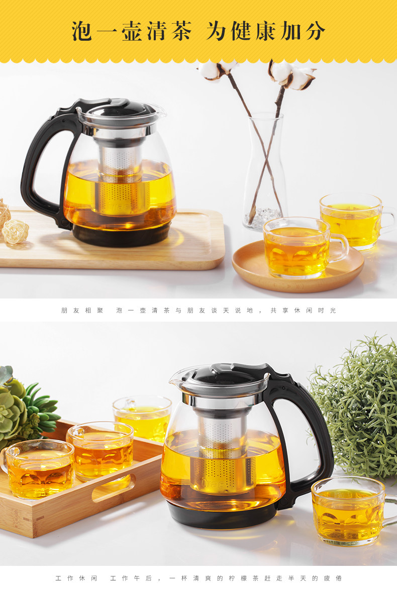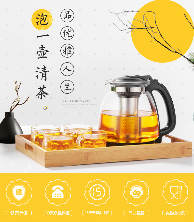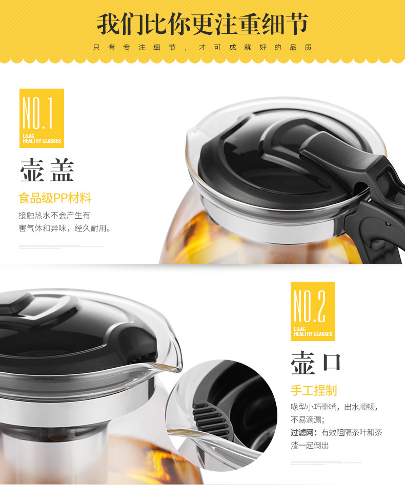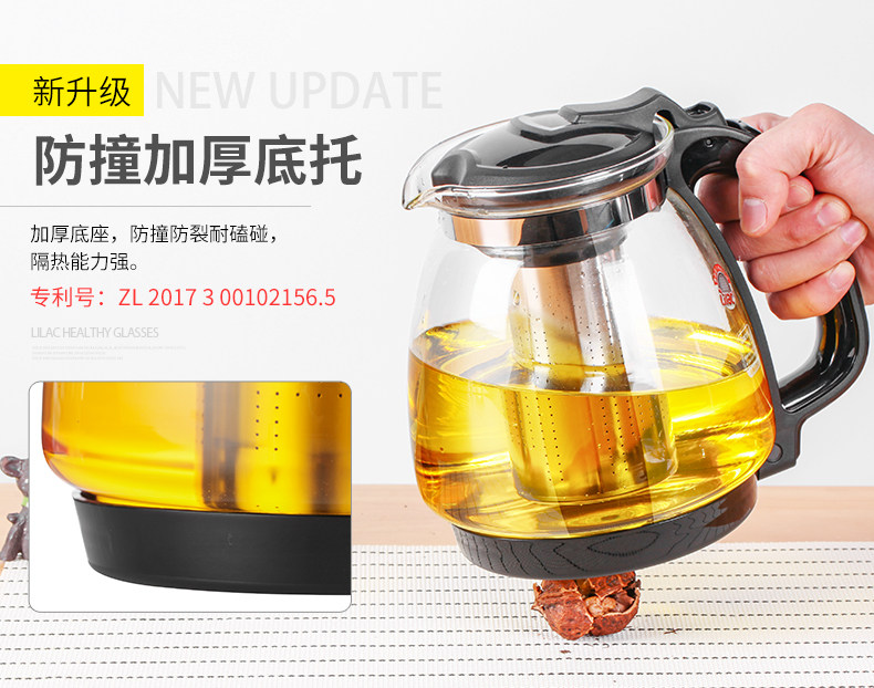 紫丁香S825-1耐热玻璃过滤茶壶 清心杯套装 1350ml