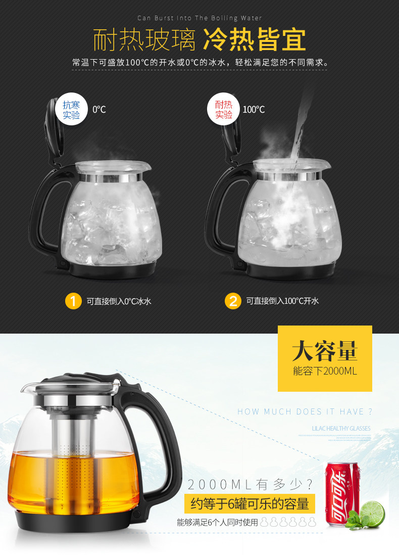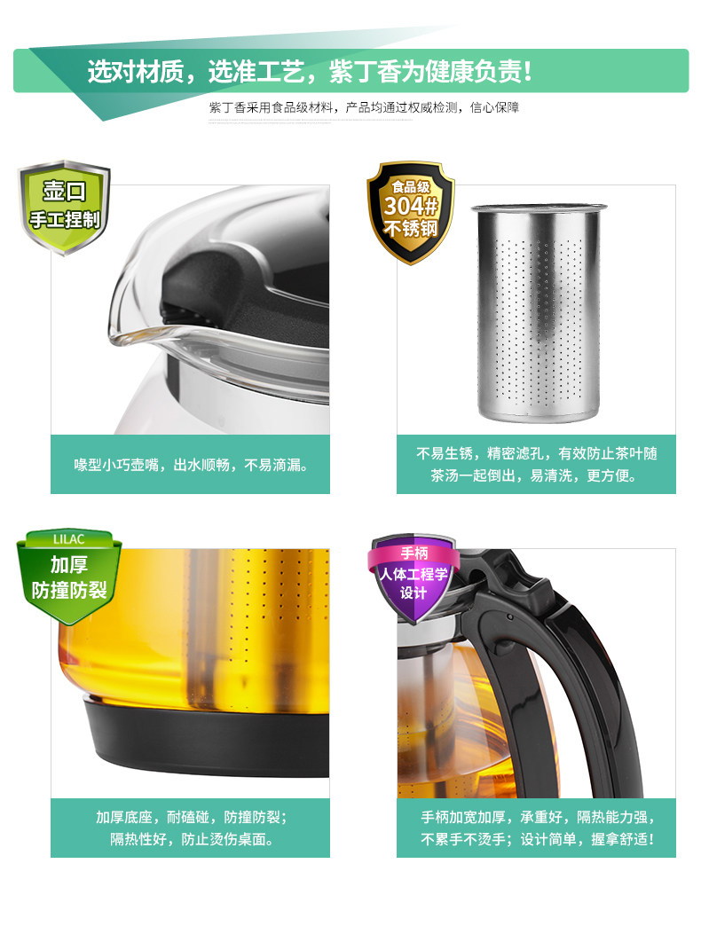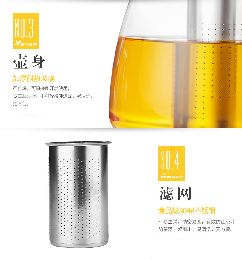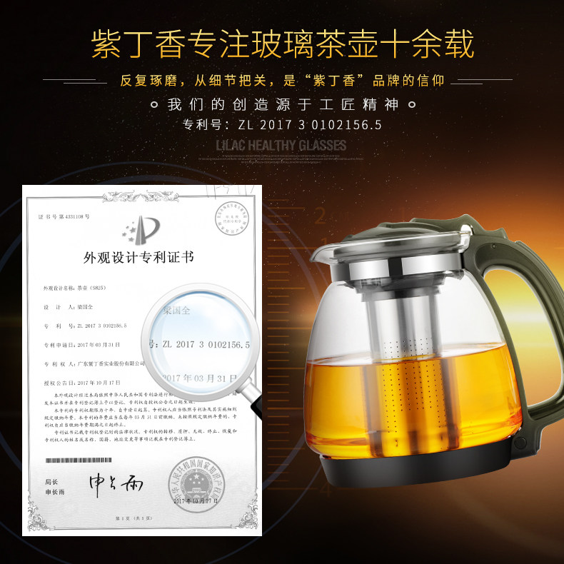 紫丁香S825-1耐热玻璃过滤茶壶 清心杯套装 1350ml