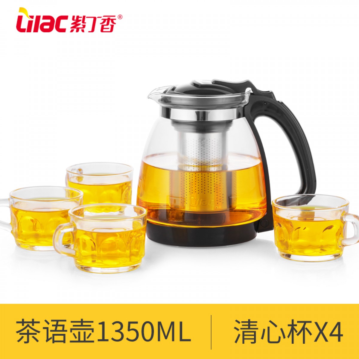 紫丁香S825-1耐热玻璃过滤茶壶 清心杯套装 1350ml(单位:个)