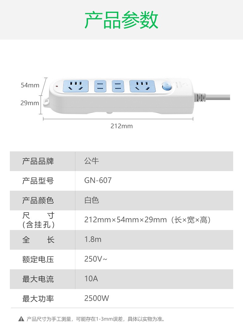 商品名称:公牛GN-317插座排插 6位分控开关5米(单位:个)