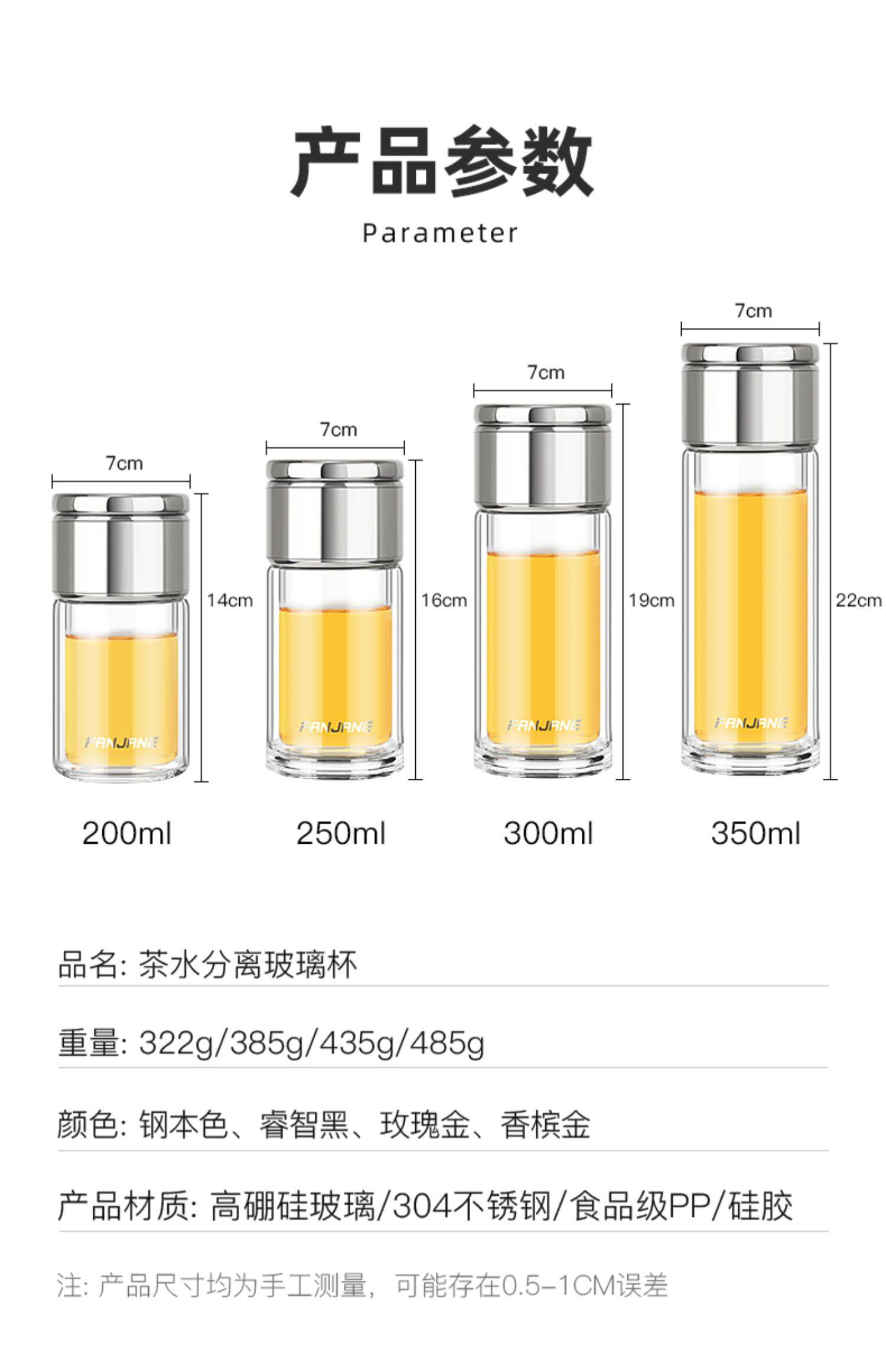 商品名称:繁简茶水分离家用茶杯 香槟金 200ml(单位:个)