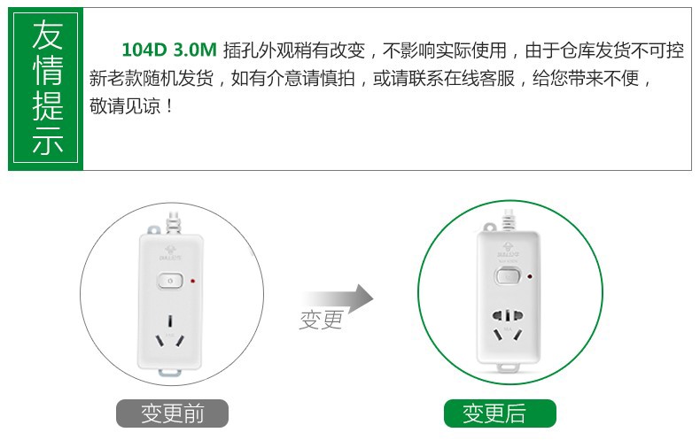 商品名称:公牛GN-406D插座排插 3插位1.8米(单位:个)