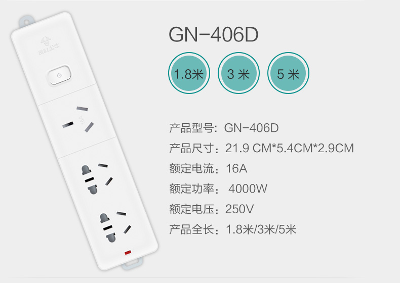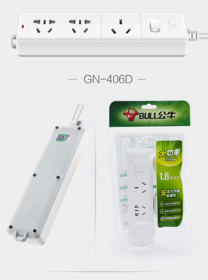 公牛GN-406D插座排插 3插位1.8米(单位:个)