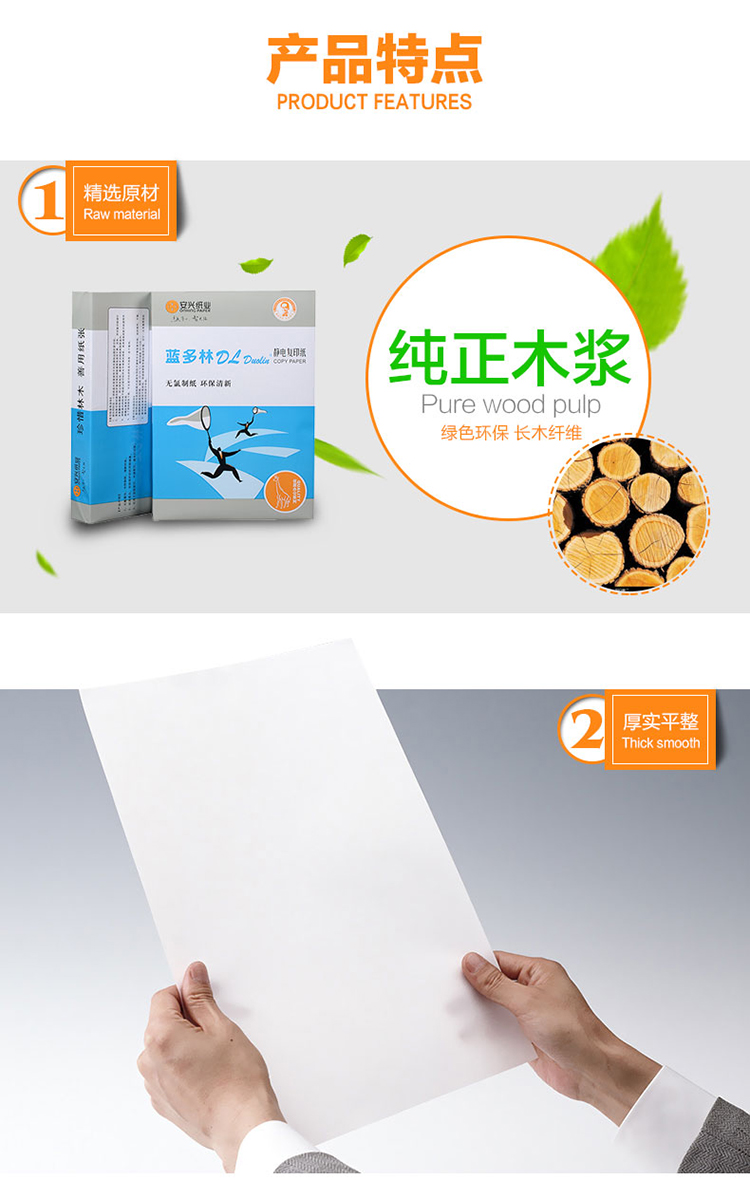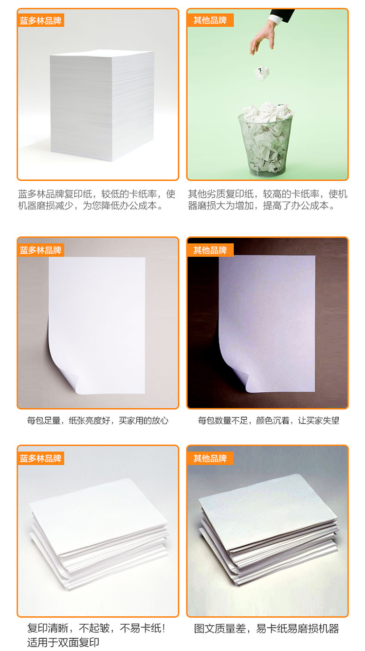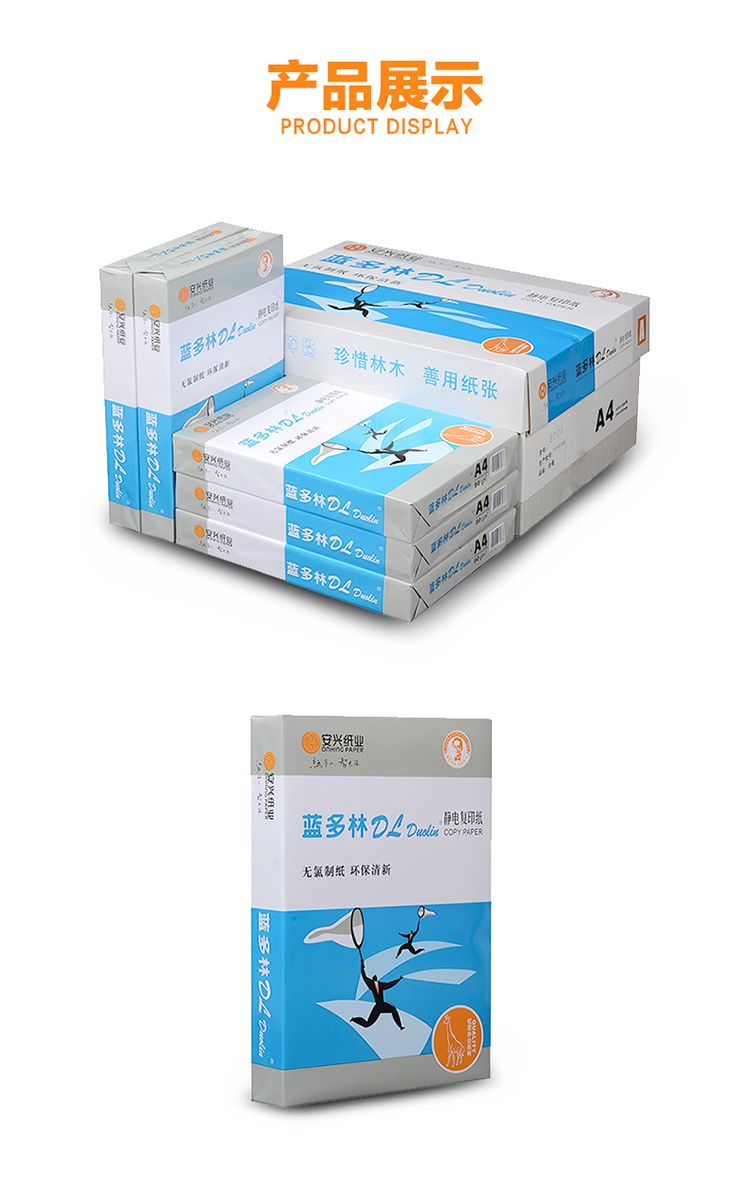 商品名称:蓝多林复印纸 A3 80g 500页/包 单位:包