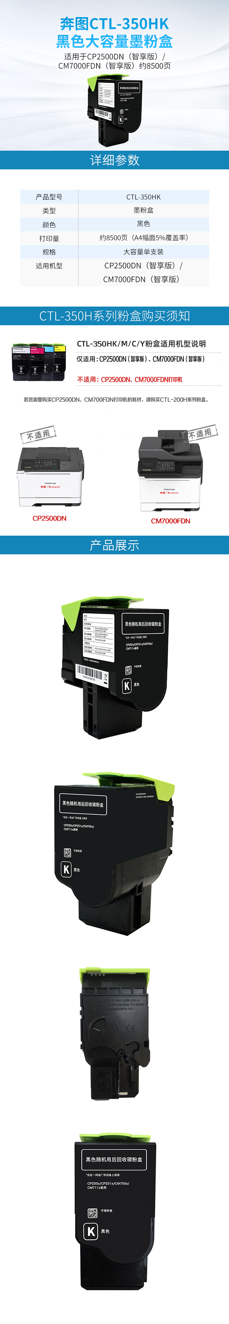 商品名称:奔图CTL-350HK墨粉盒 黑色 大容量 适用于CP2500DN(智享版)/CM7000FDN(智享版)约8500页(单位:个)