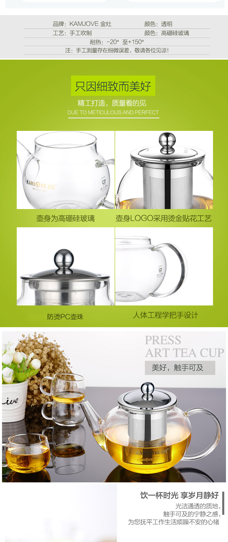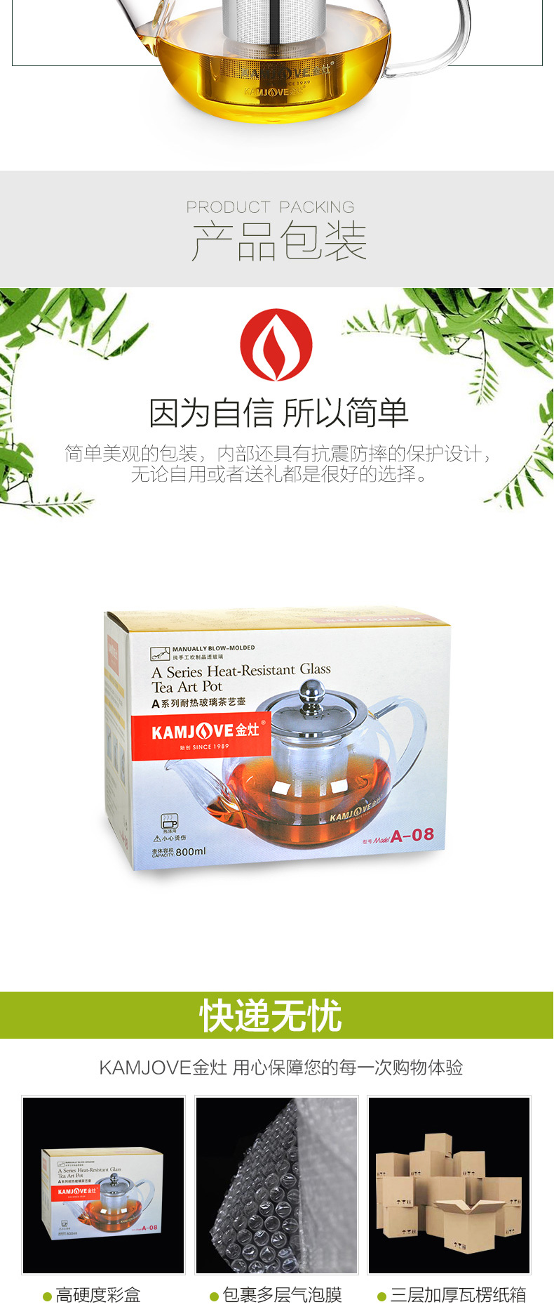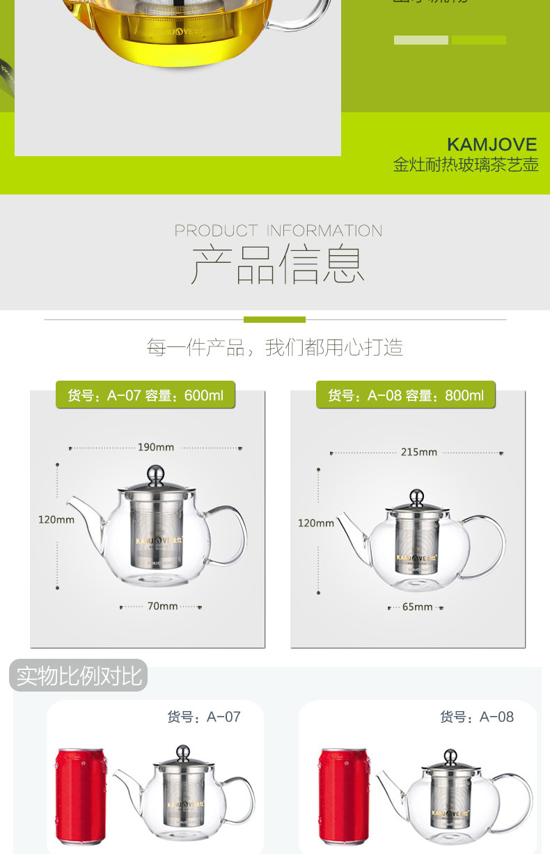 商品名称:金灶A-07玻璃泡茶壶飘逸杯 600ml 单位:个