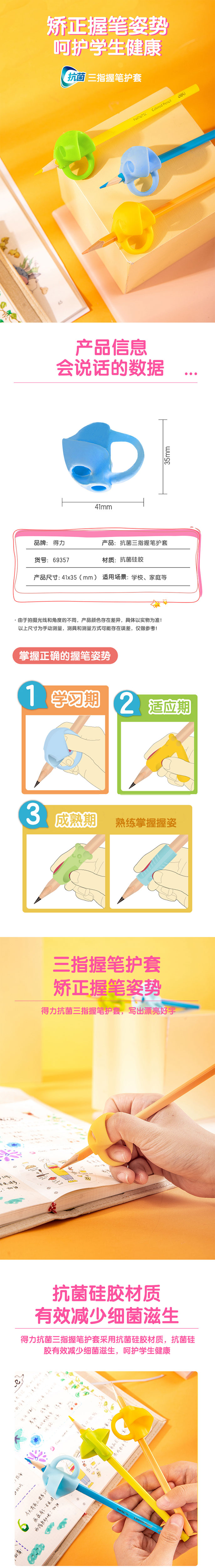 得力69357三指抗菌握笔护套 混色 3只/卡 单位:卡