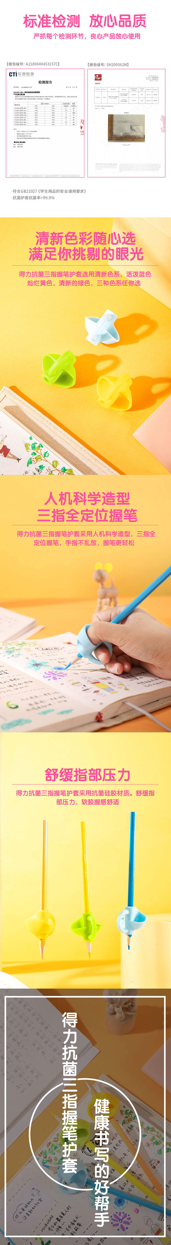 商品名称:得力69357三指抗菌握笔护套 混色 3只/卡 单位:卡