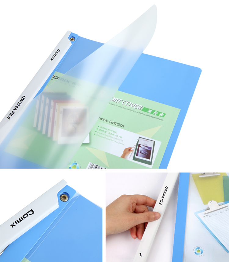 商品名称:齐心QW324A拉边杆报告夹 A4 10张 单位:个