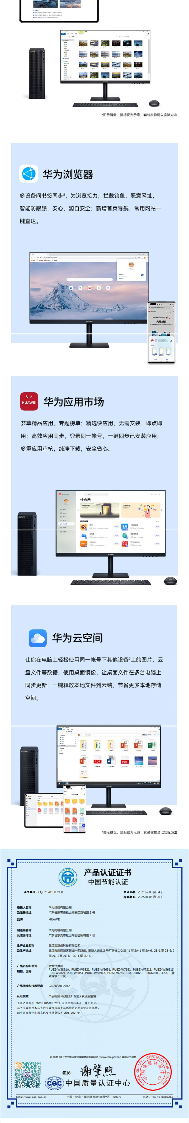 商品名称:华为Matestation B520 PUBZ-W5891A台式电脑 Corei5-10400(2.9GHz/12MB/6核)/1T+256G SSD/8GB(8GB*1)/无光驱/23.8"/3年保修/3年上门 单位:台