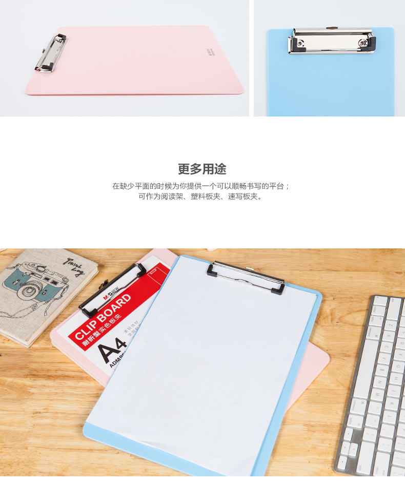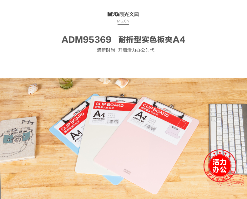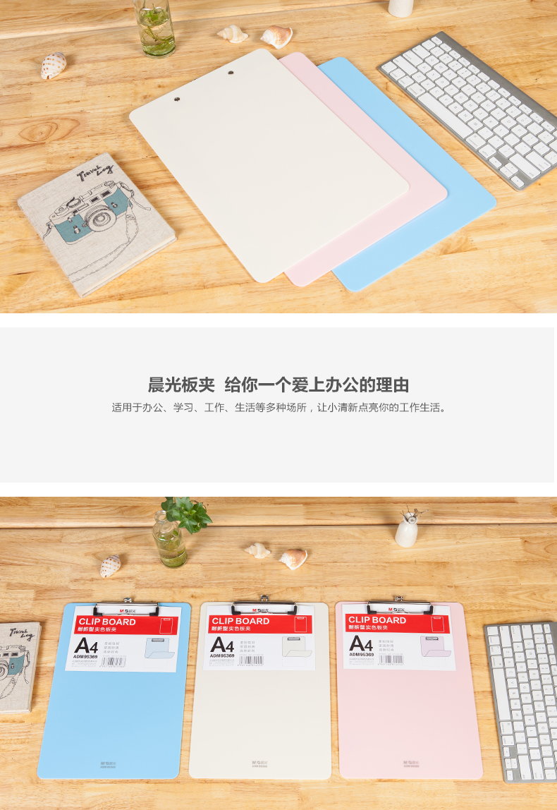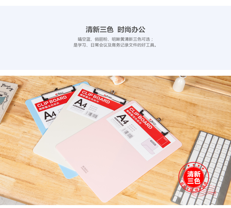商品名称:晨光ADM95369N3耐折型实色书写板夹 A4 颜色随机 单位:个