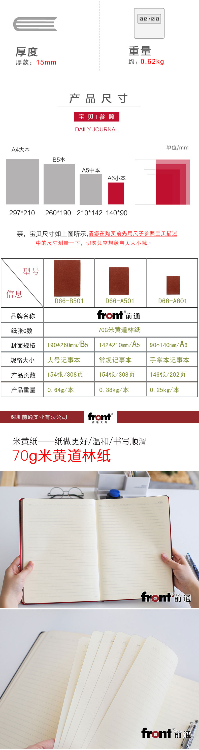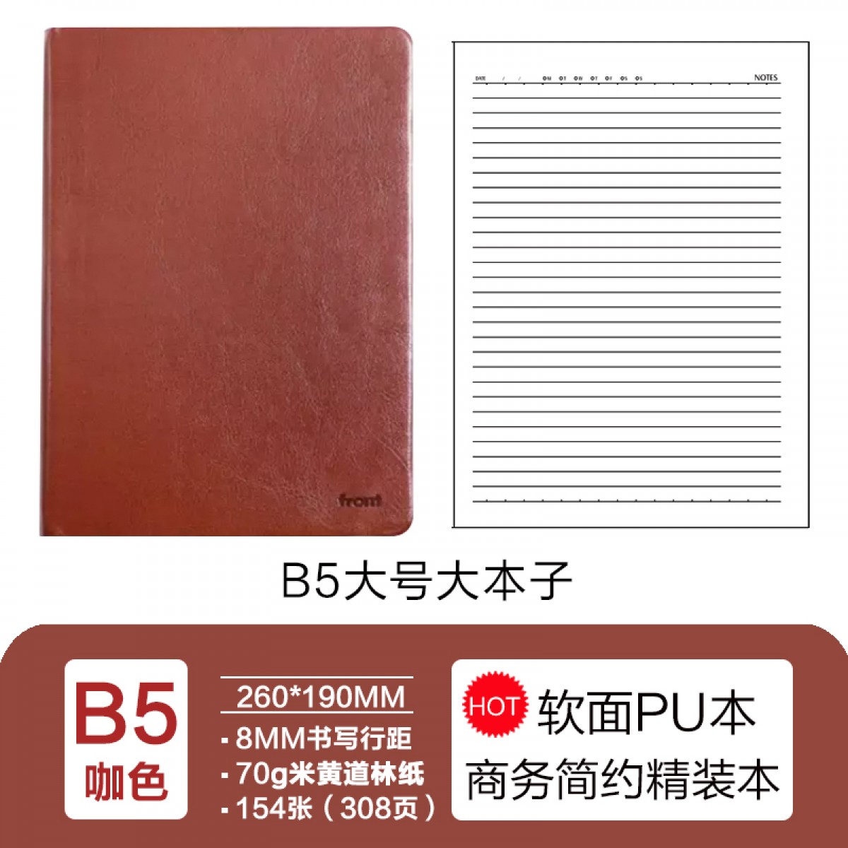 商品名称:前通D66-B501商务笔记本 软皮面会议本 B5 咖色 单位:本