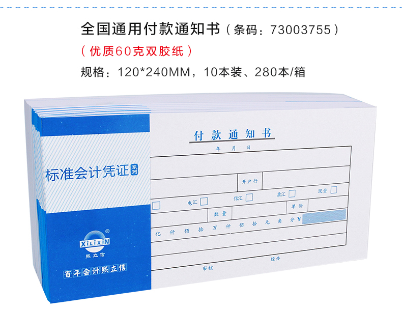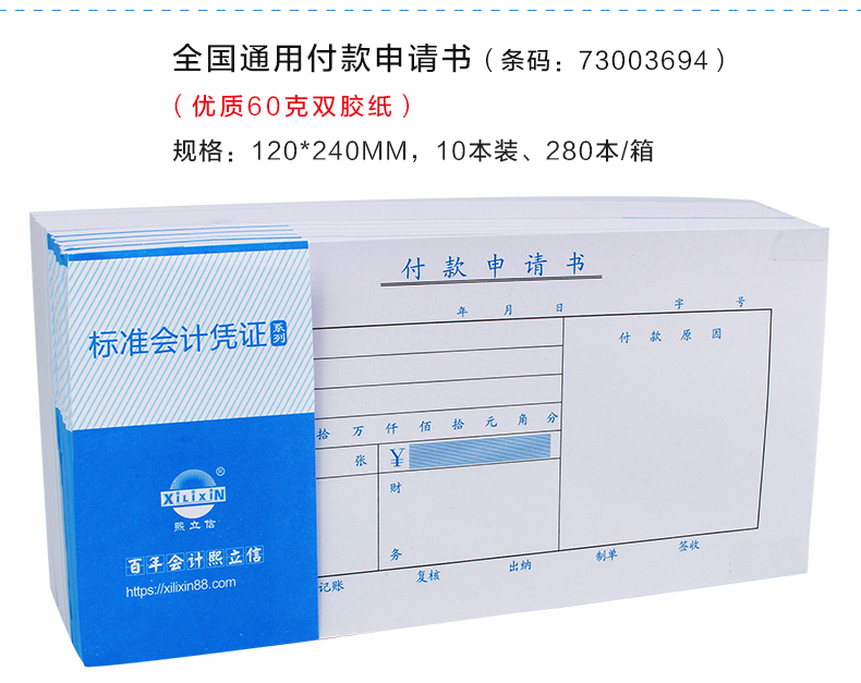 商品名称:熙立信付款申请书240*120mm 50页/本 10本/包 单位:本