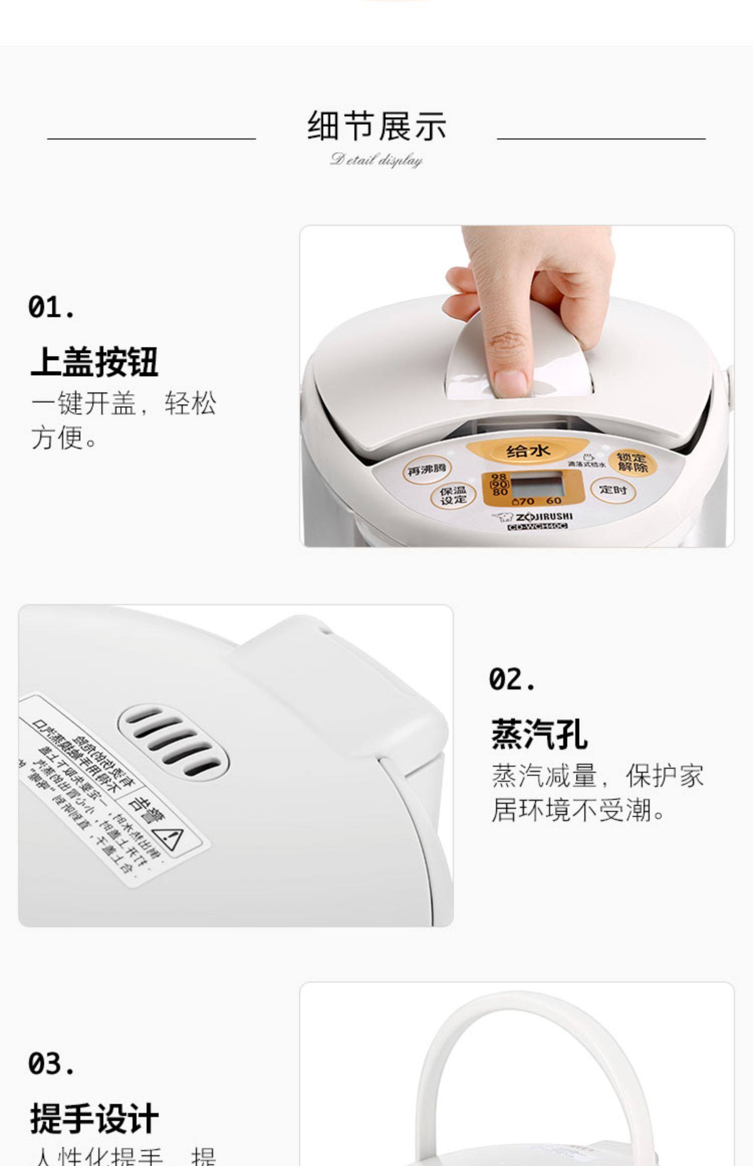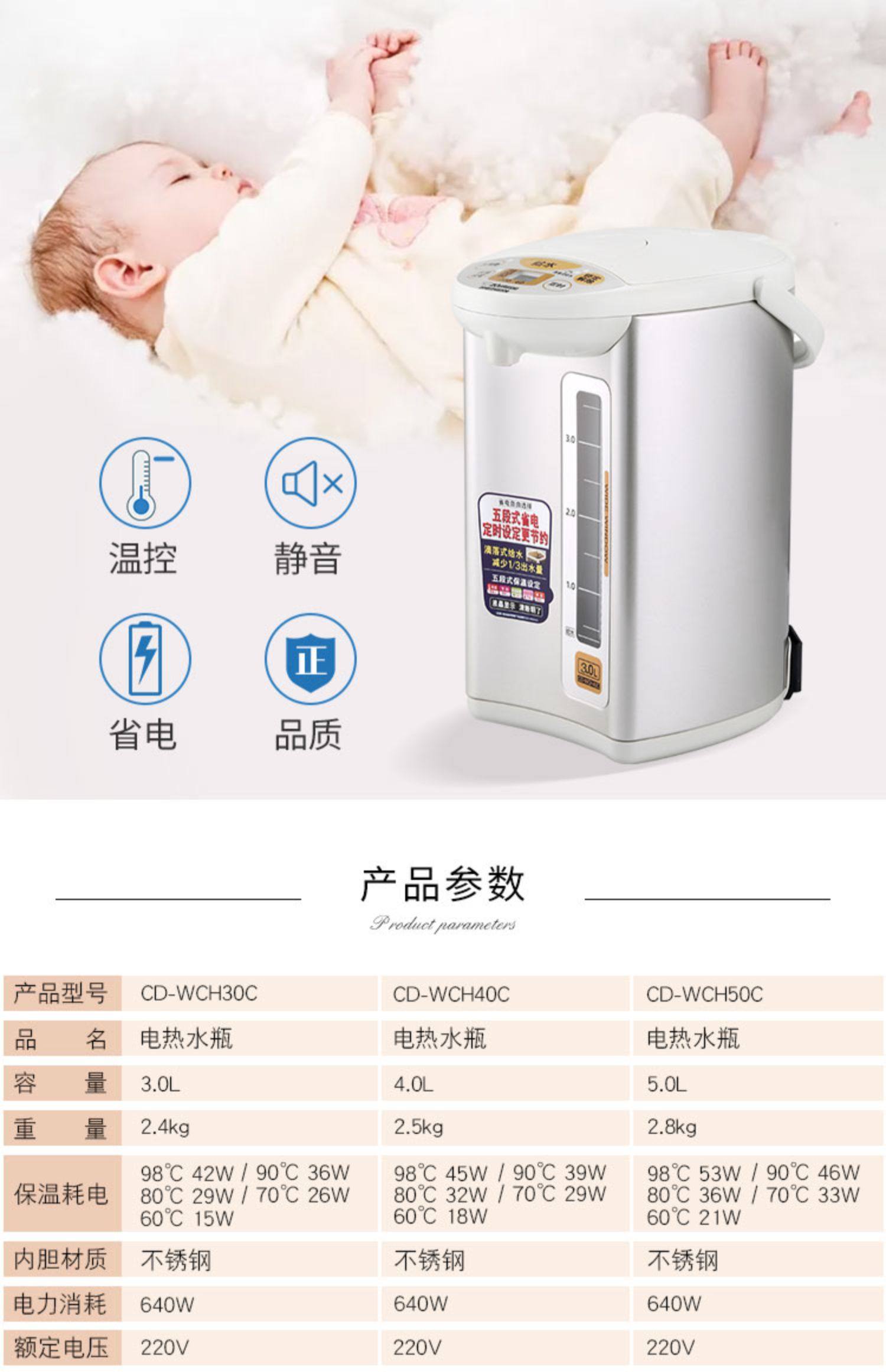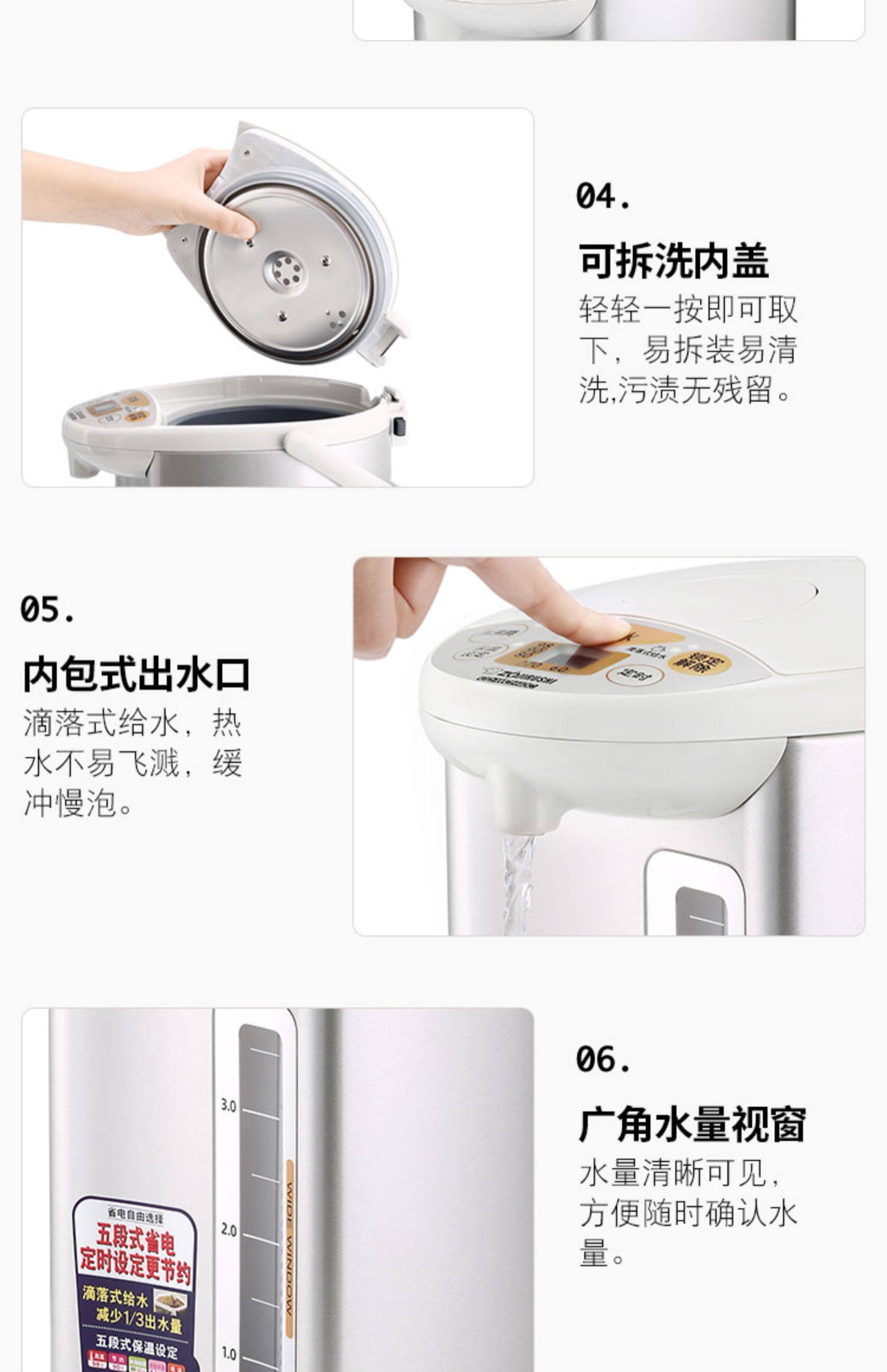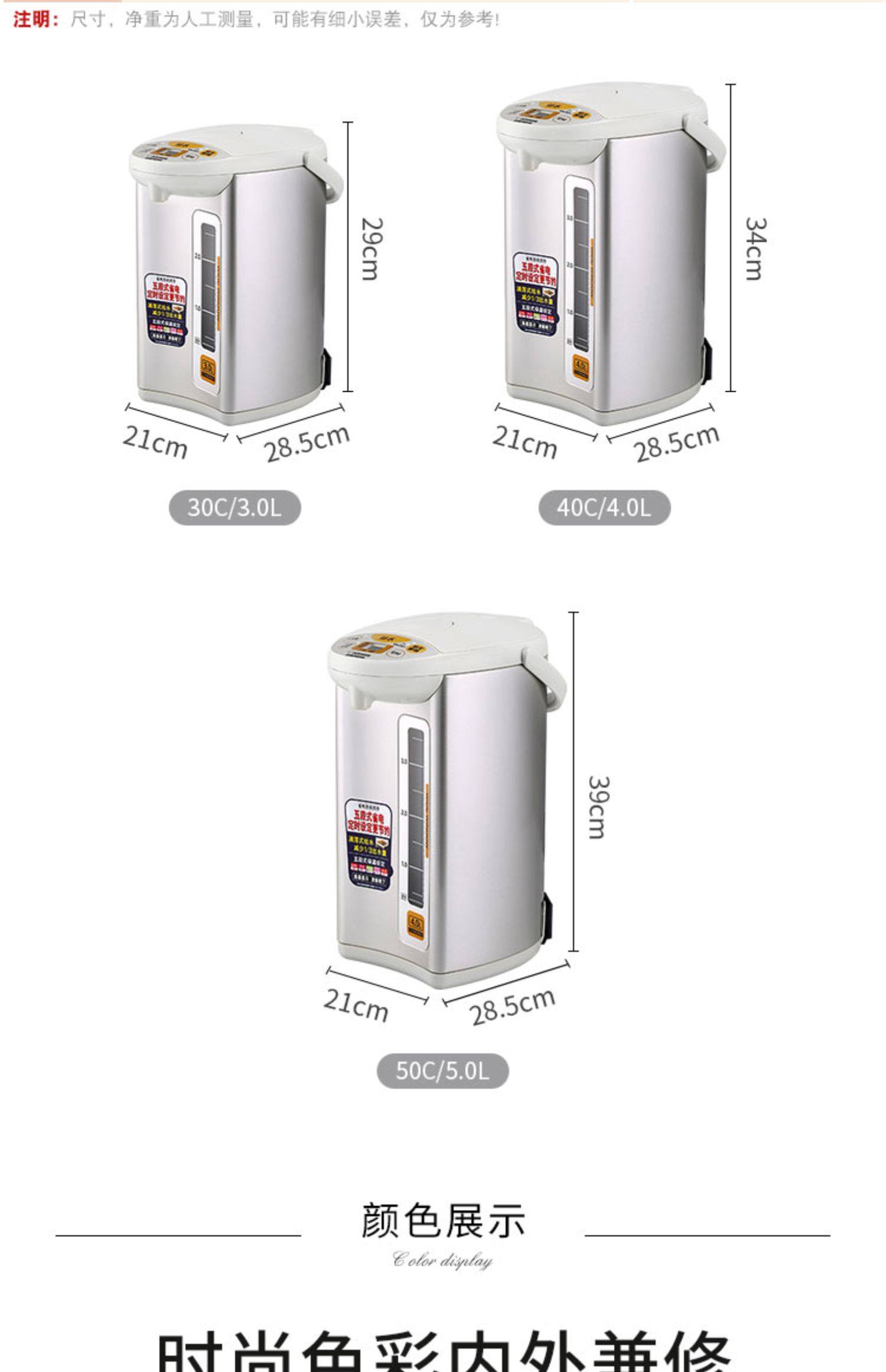 商品名称:象印CD-WCH40C电热水壶 微电脑五段控温 银色 4L 单位:个