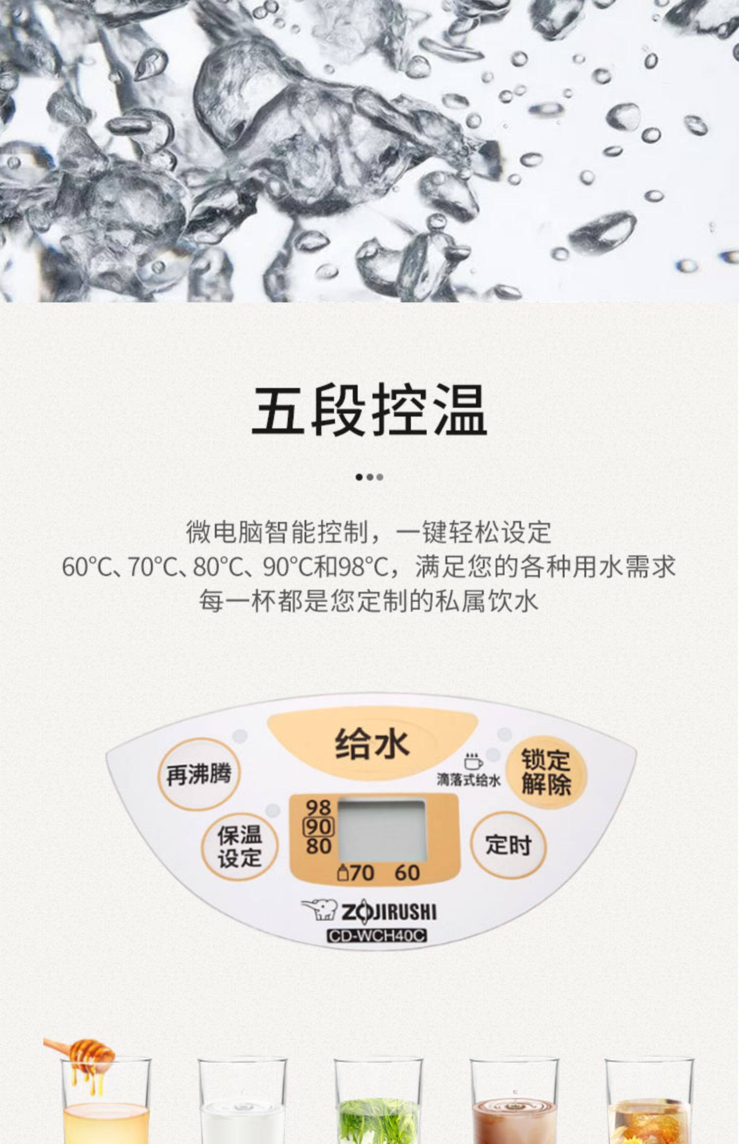 象印CD-WCH40C电热水壶 微电脑五段控温 银色 4L