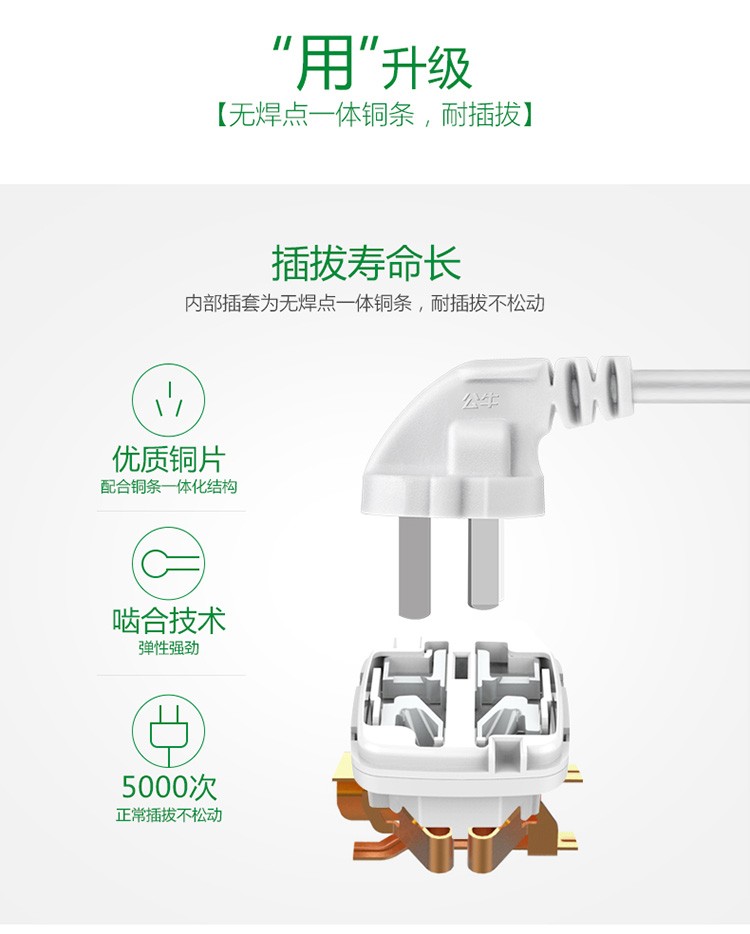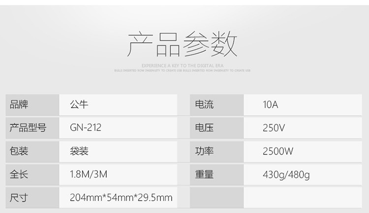 商品名称:公牛GN-212新国标插座排插 3位总控全长1.8米 单位:个