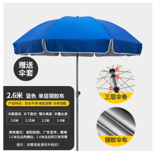 商品名称:大号太阳伞大雨伞 2.6m蓝色+银胶 单位:把