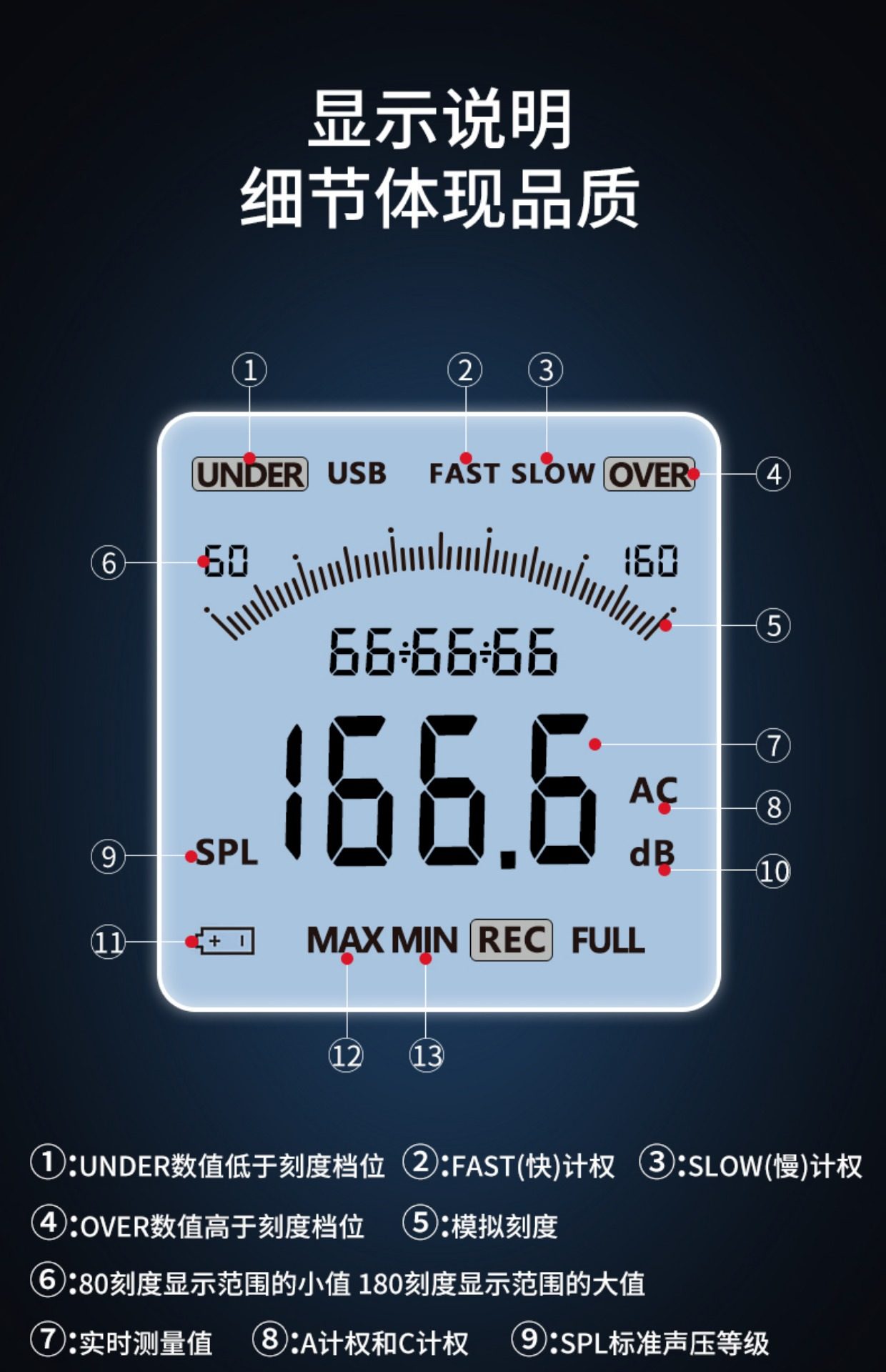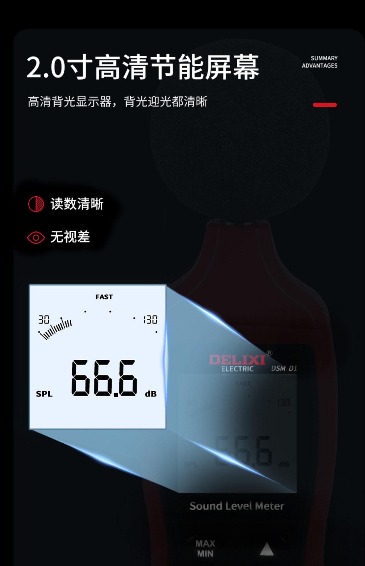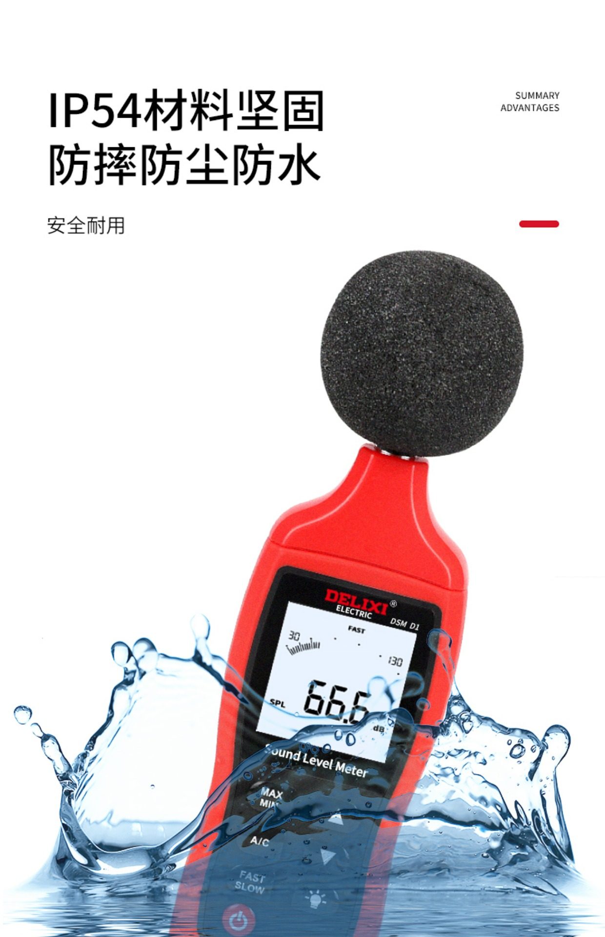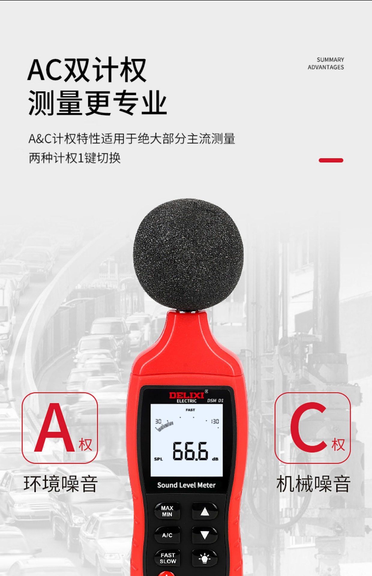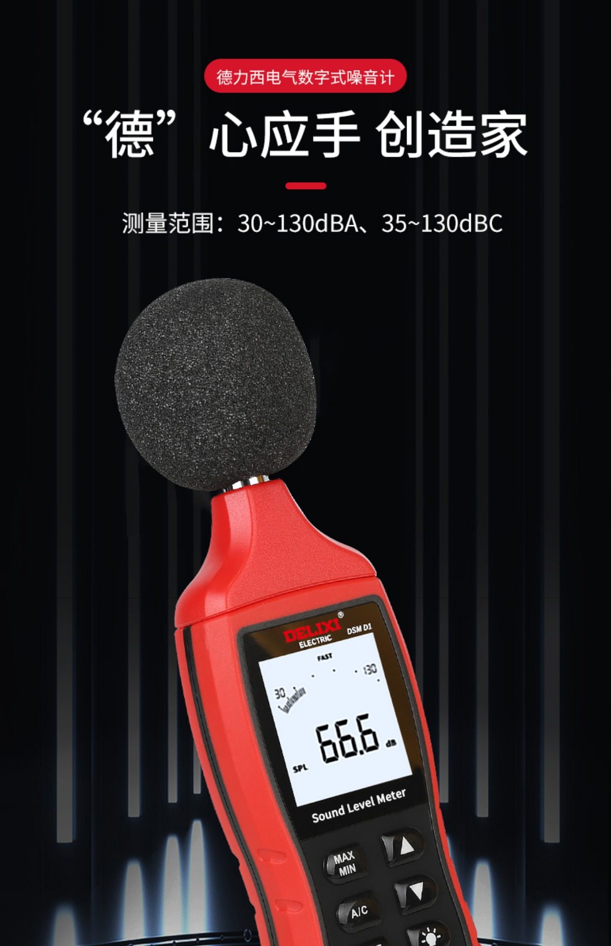 德力西DSM D1电气数字式噪音计分贝仪 30-130dB A/C模式可选