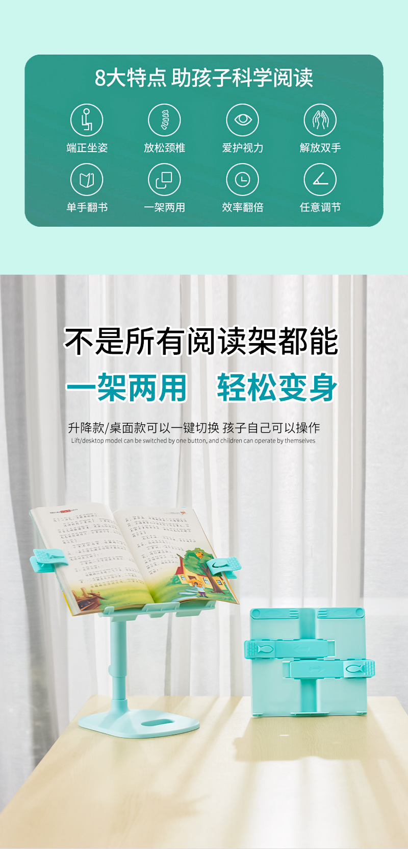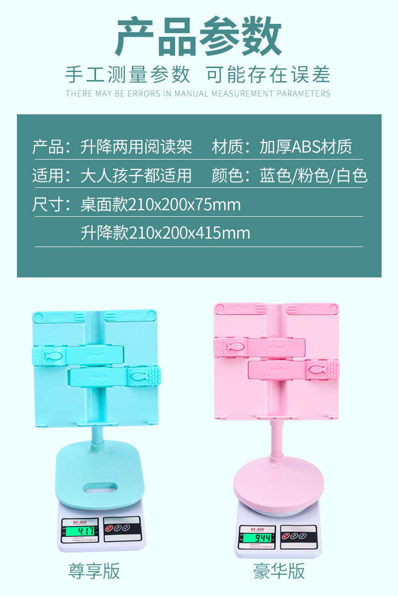 商品名称:助生读书支架阅读架 升降两用款 210*200*415mm 粉色 单位:个