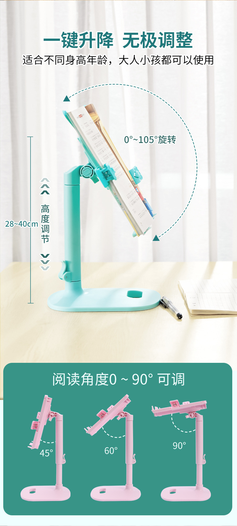 助生读书支架阅读架 升降两用款 210*200*415mm 粉色 单位:个