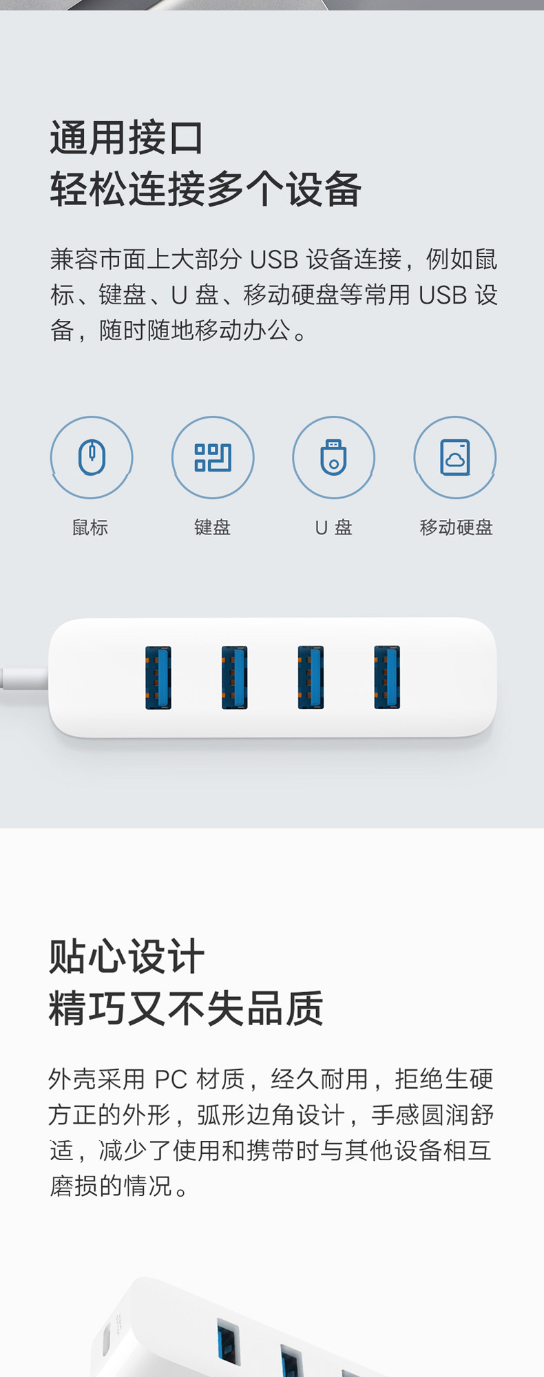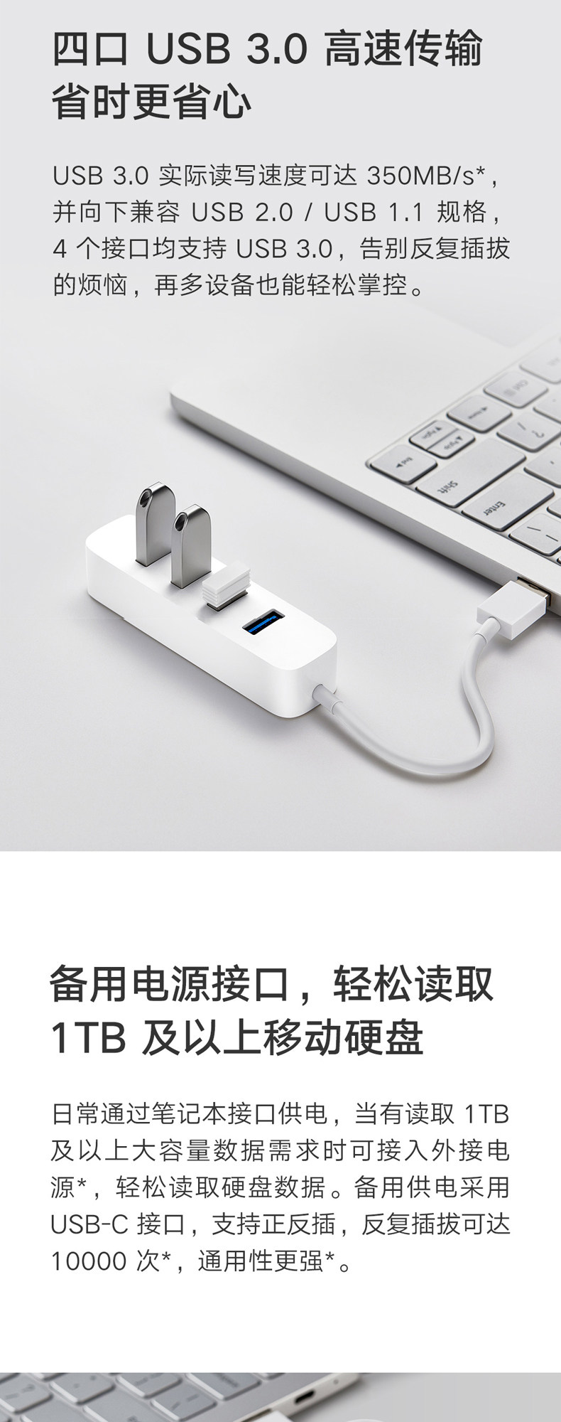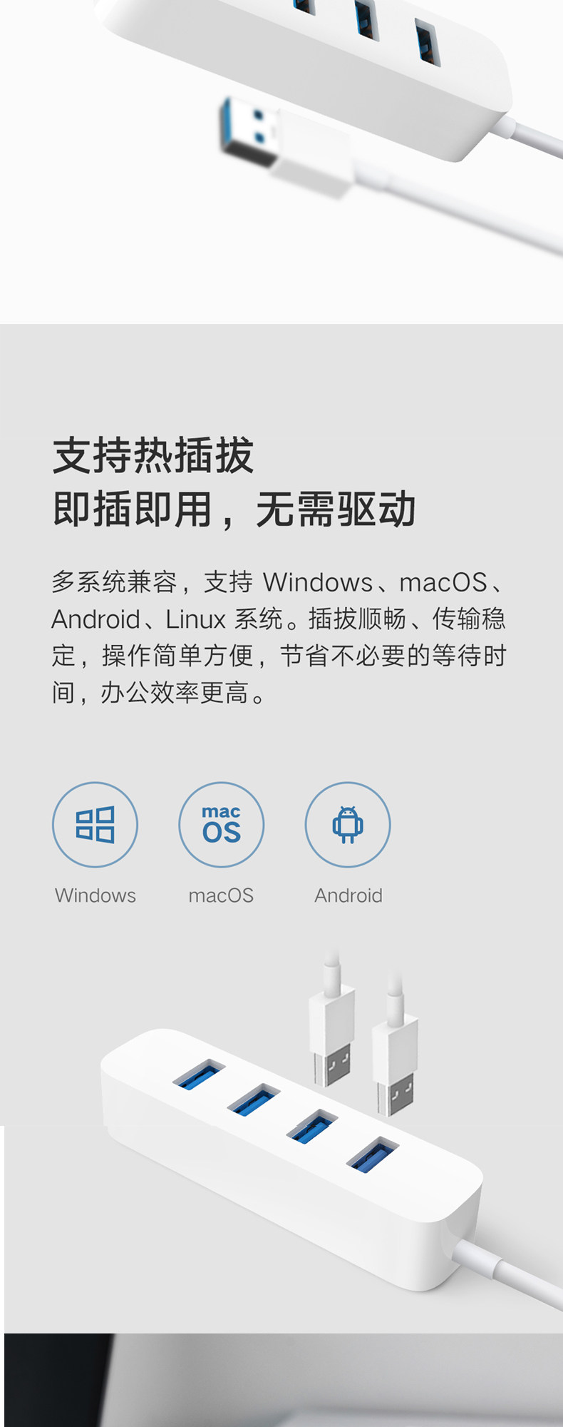 商品名称:小米分线器USB3.0一拖四外接usb插口 白色 单位:个