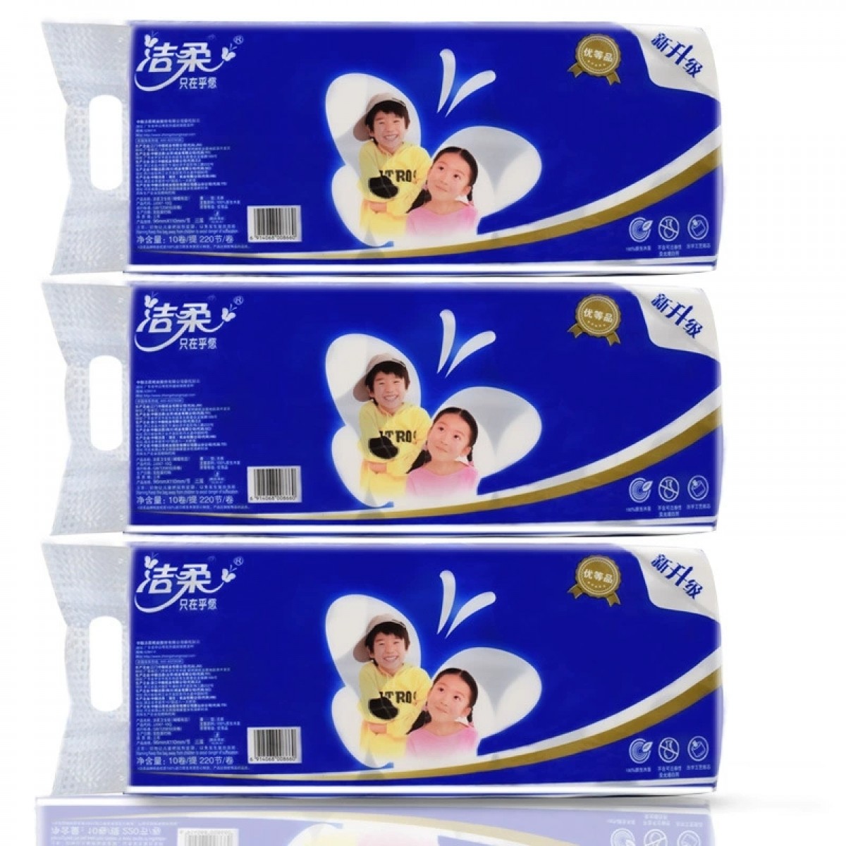 洁柔JJ067-10Q卫生卷纸 4层(蝴蝶有芯) 108g/卷 10卷/提 6提/件