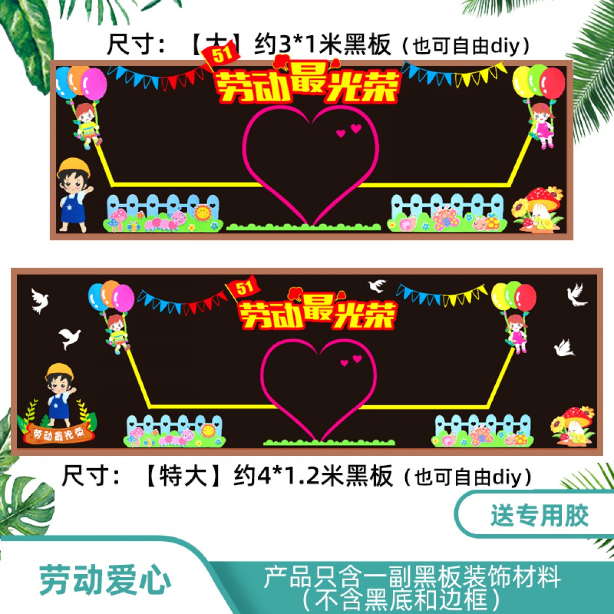商品名称:劳动节黑板报装饰贴 劳动爱心 4*1.2m 单位:套
