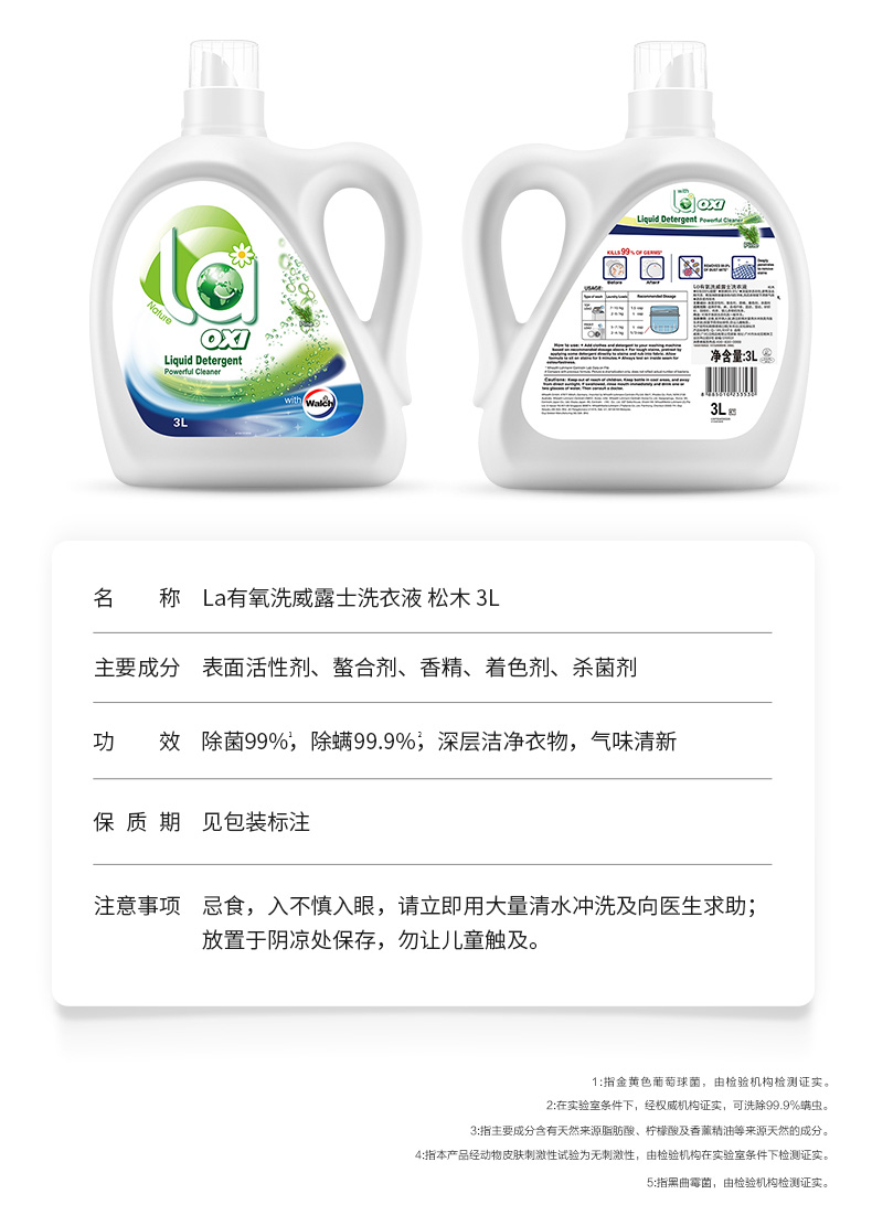商品名称:威露士抗菌有氧洗衣液 (松木)3L 单位:瓶